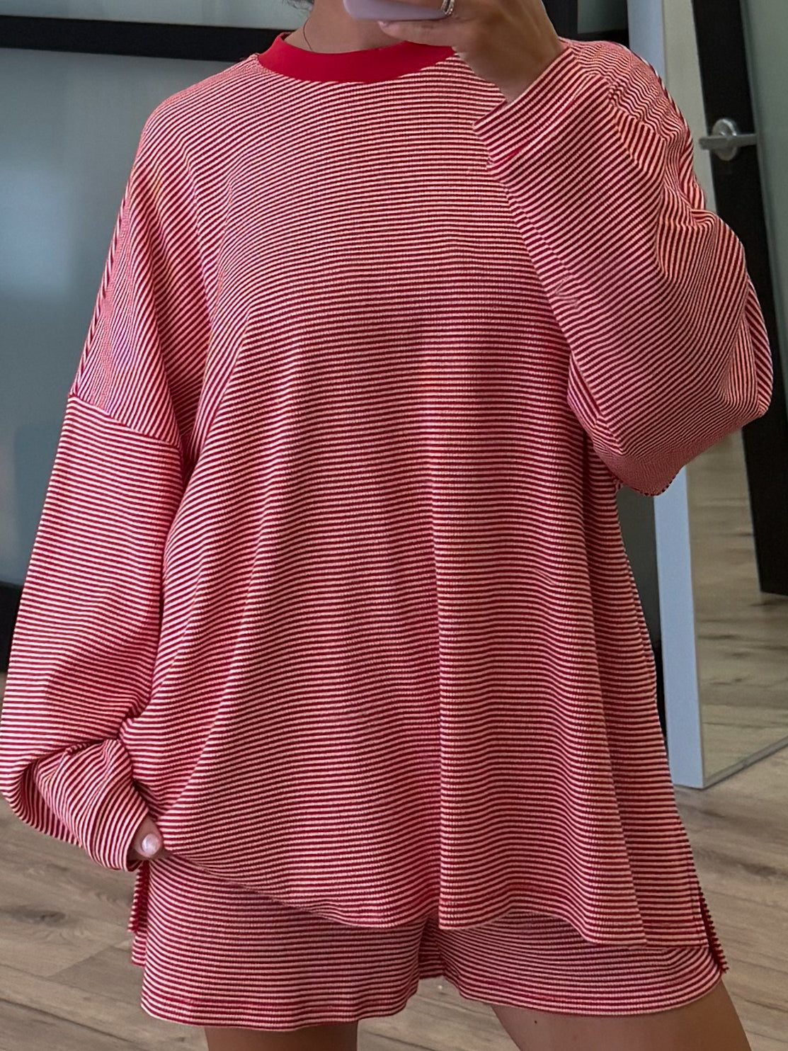 Easy Going Ribbed Stripe Shorts | Cherry