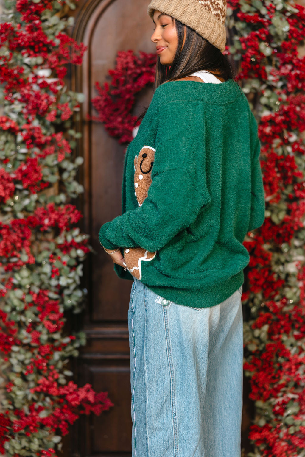 - Oversized Fuzzy Knit Gingerbread Men Embellished Cardigan