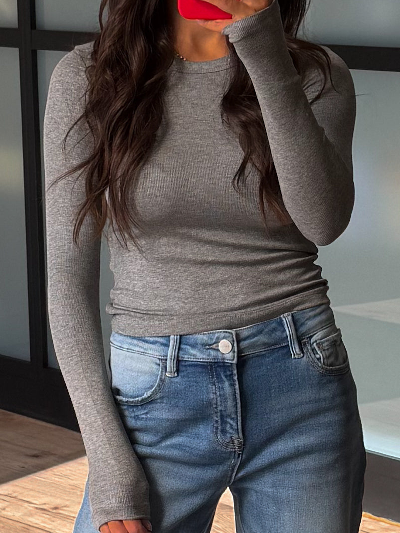 Cropped Essential Ribbed Long Sleeve | Grey | +Plus Available