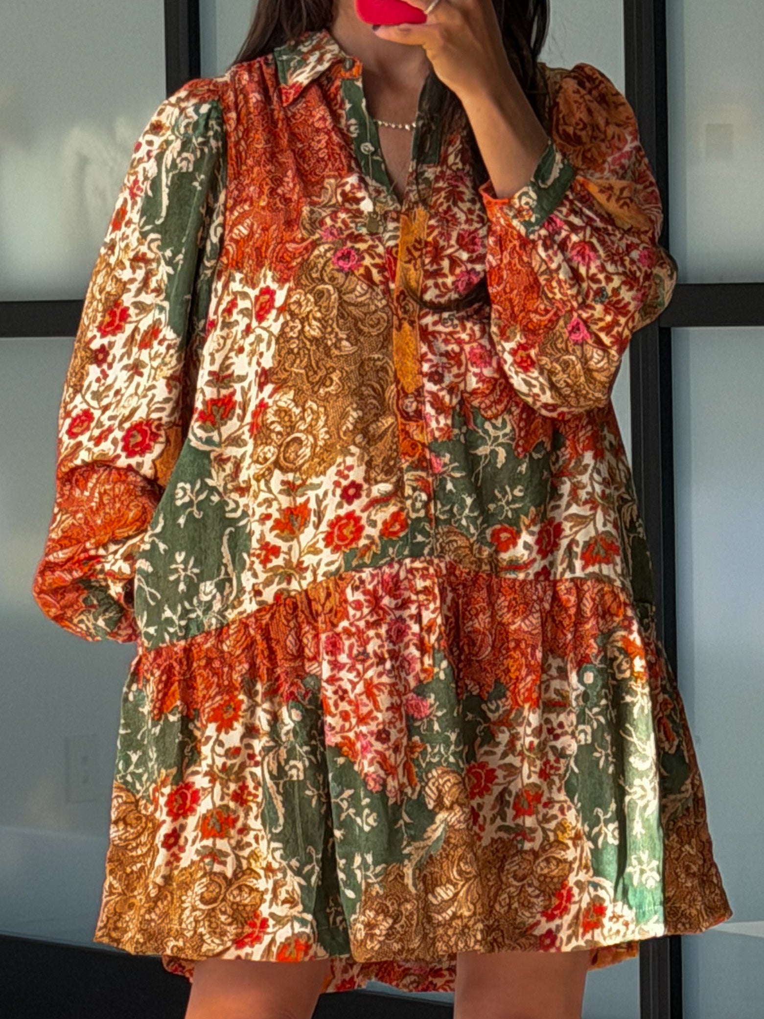 - Patchwork Floral Print Dress