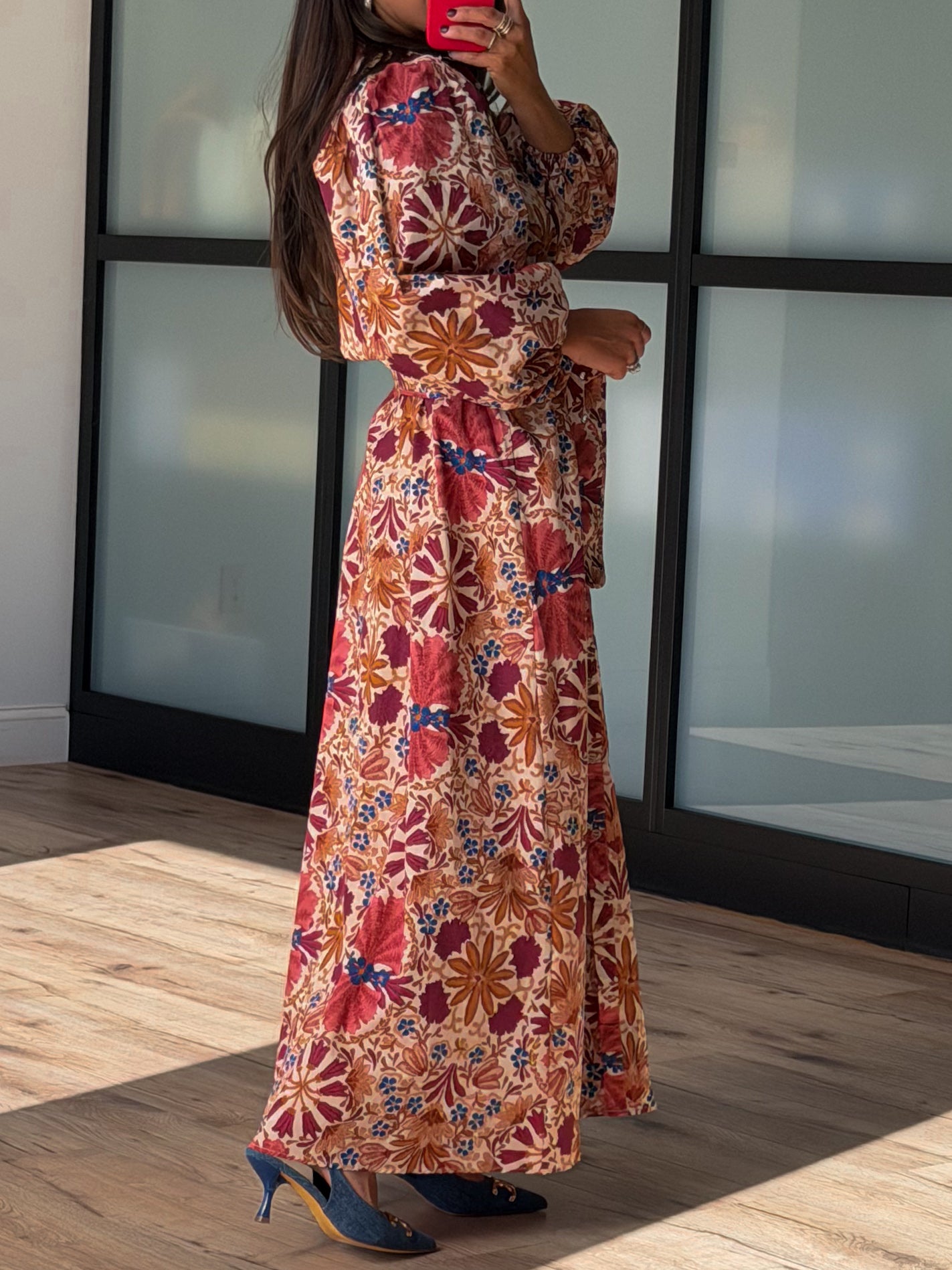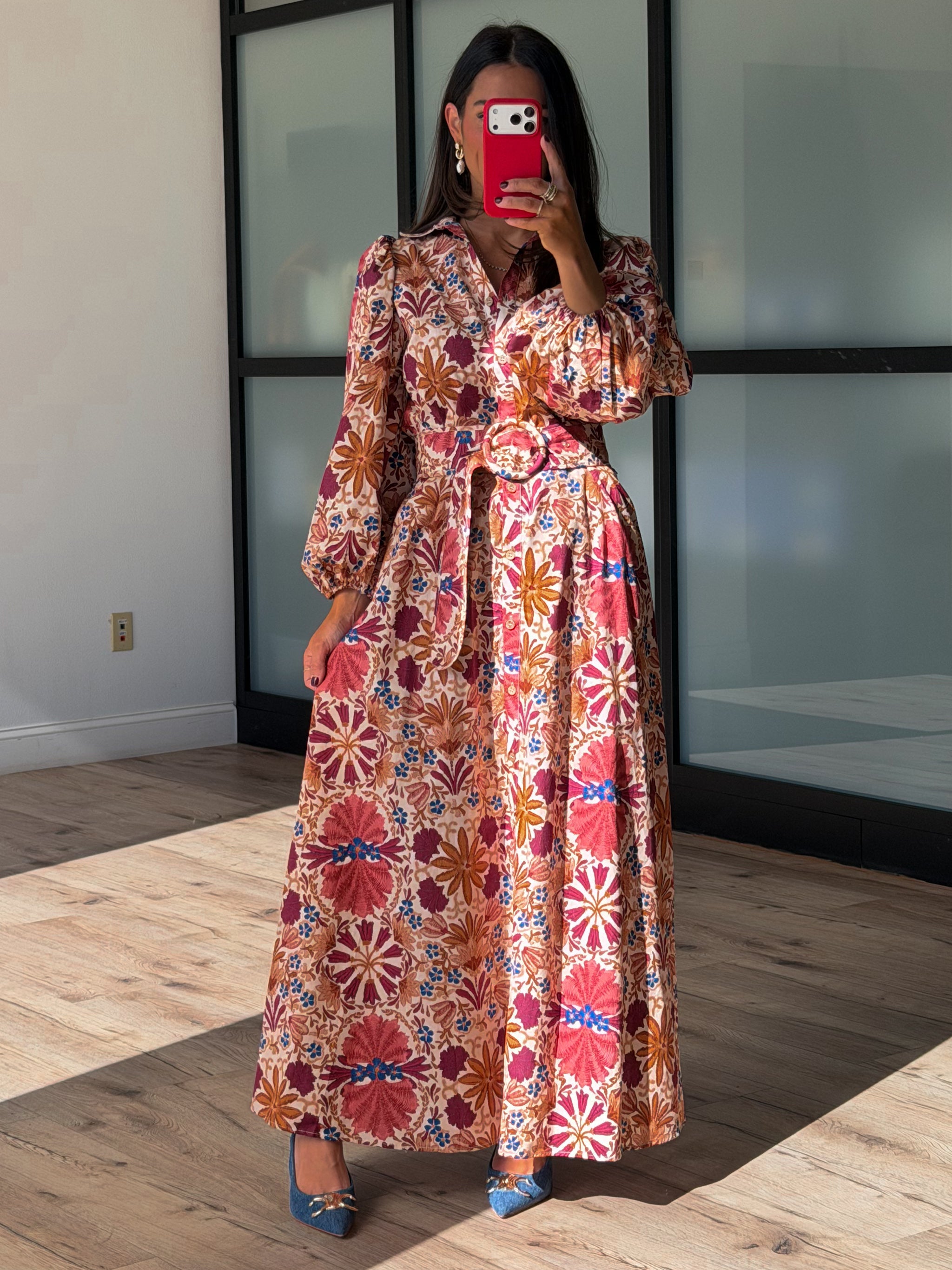 - Multi-Colored Floral Belted Maxi Dress