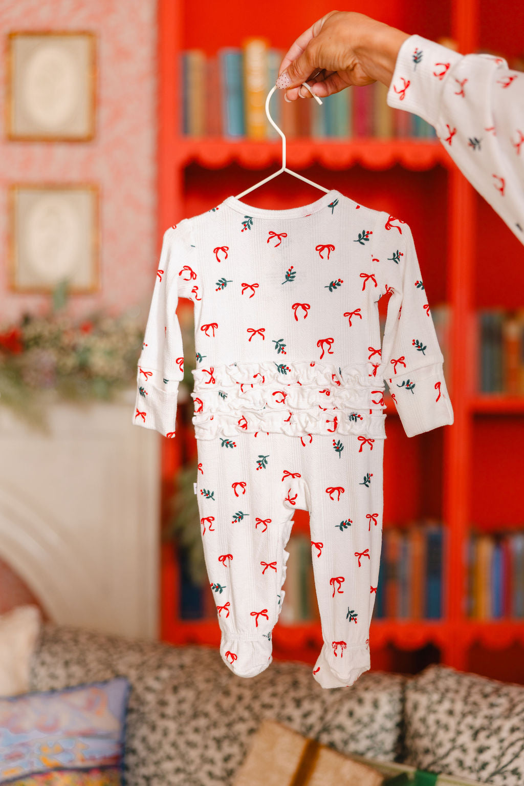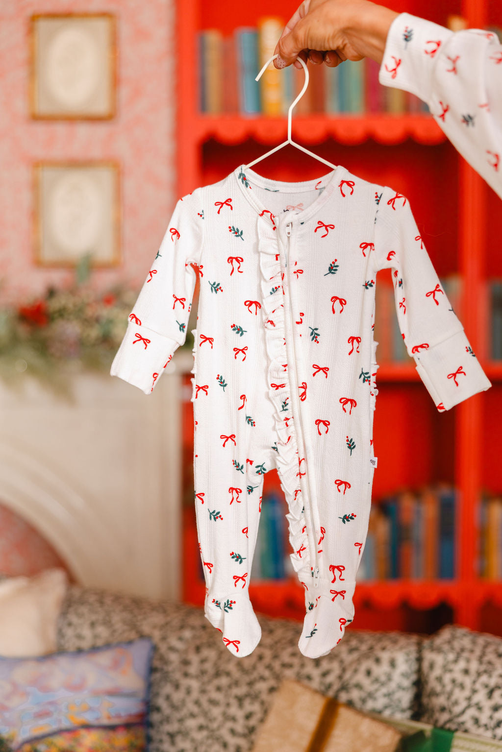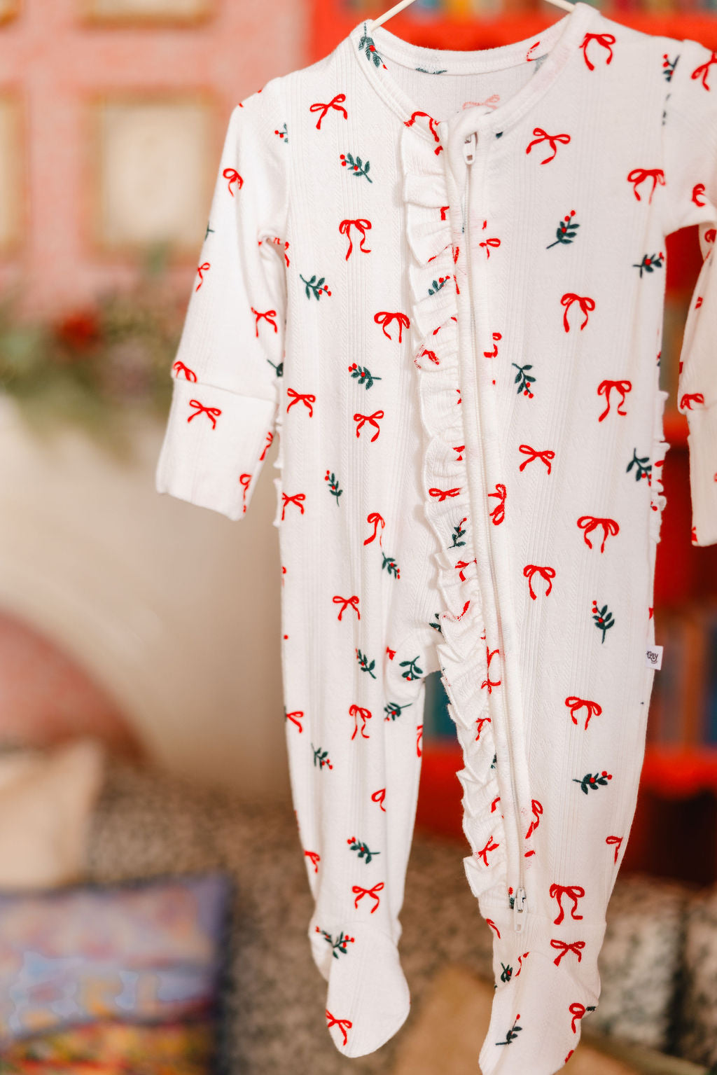 Holly + Bows Pointelle Ruffle Zippy | Tiny Talulah