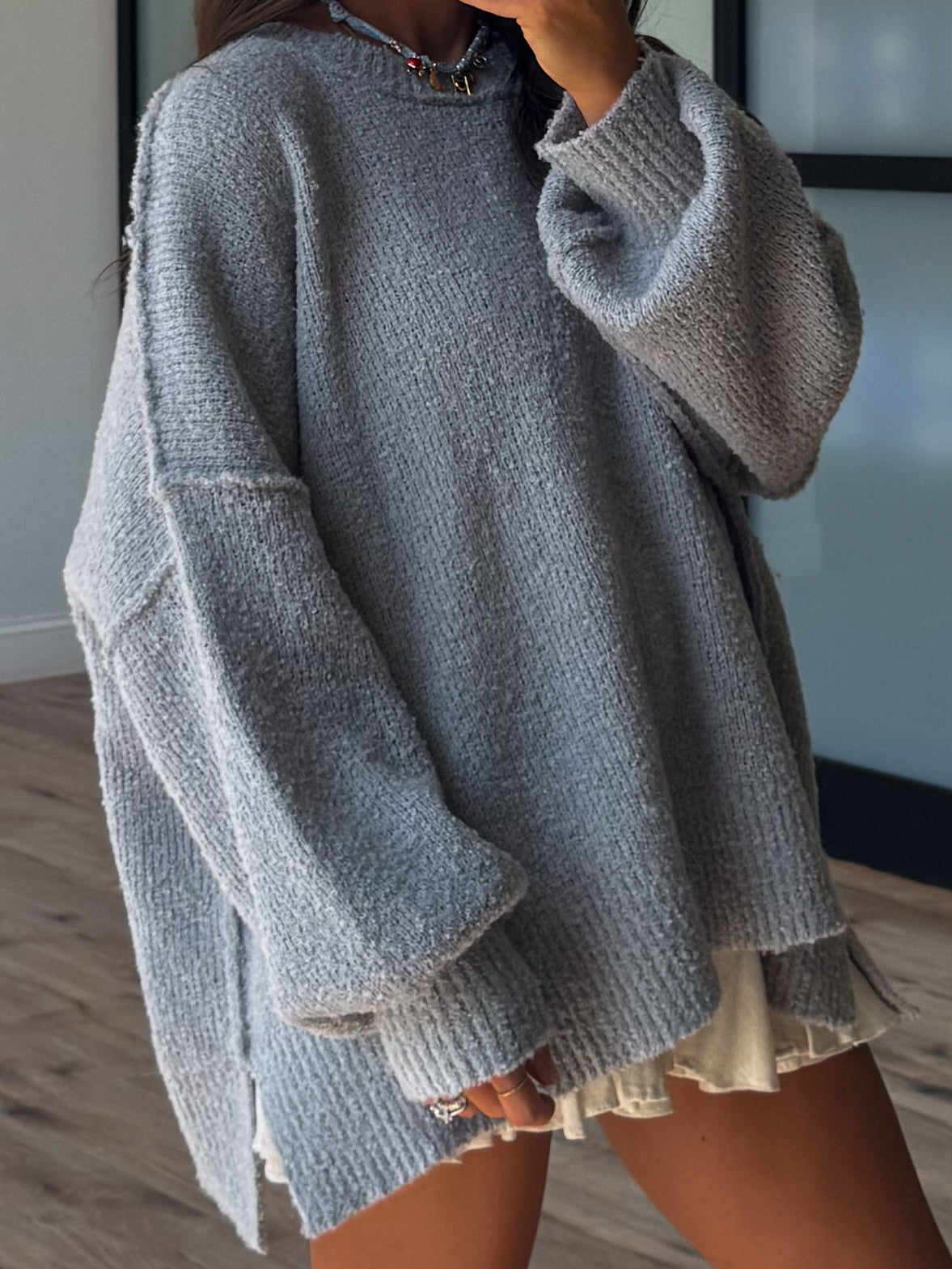 - Long Sleeve Textured Knit Sweater