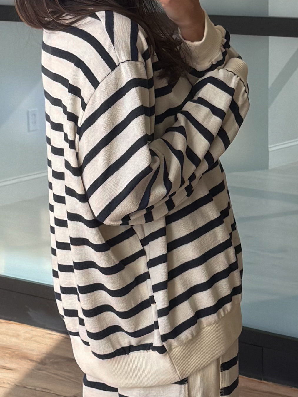 - Ribbed, Stripe Print Oversized Top