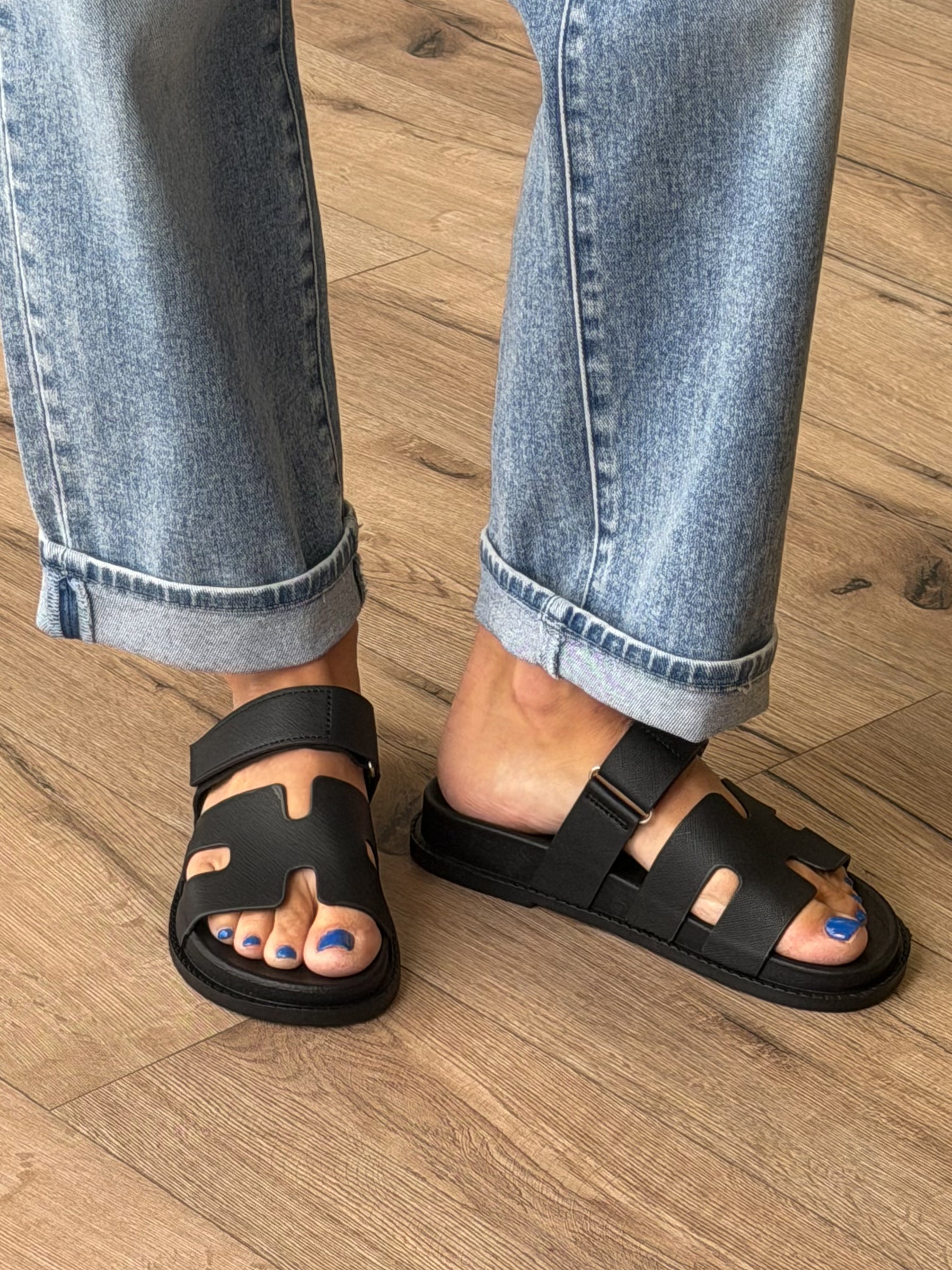 - Slip On Flat Slides with Velcro Strap