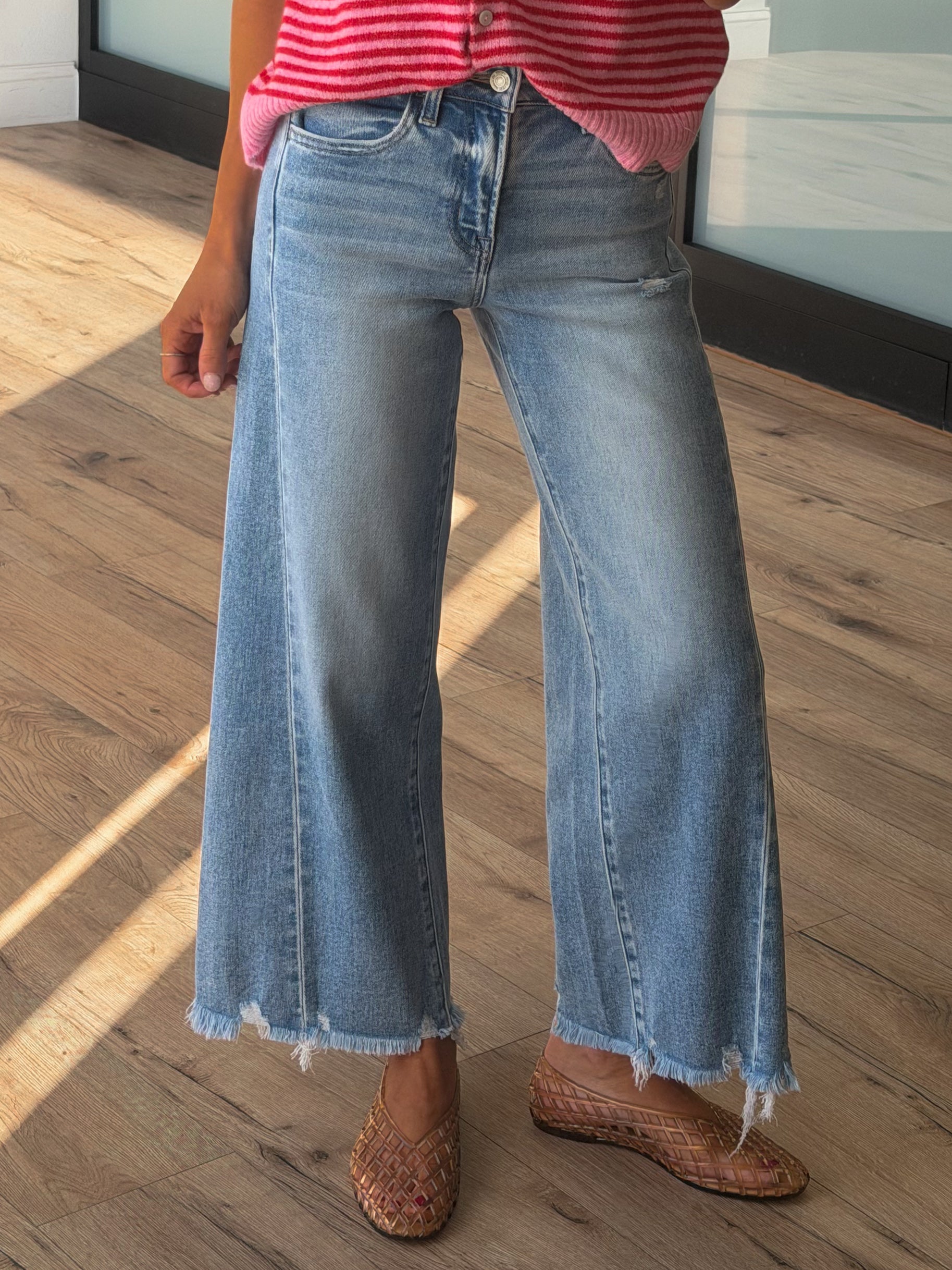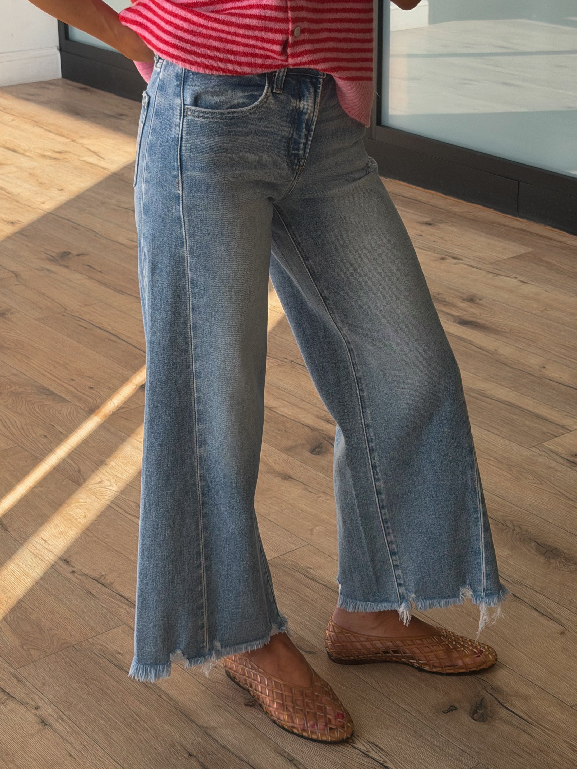- High Rise, Cropped Wide Leg Jeans