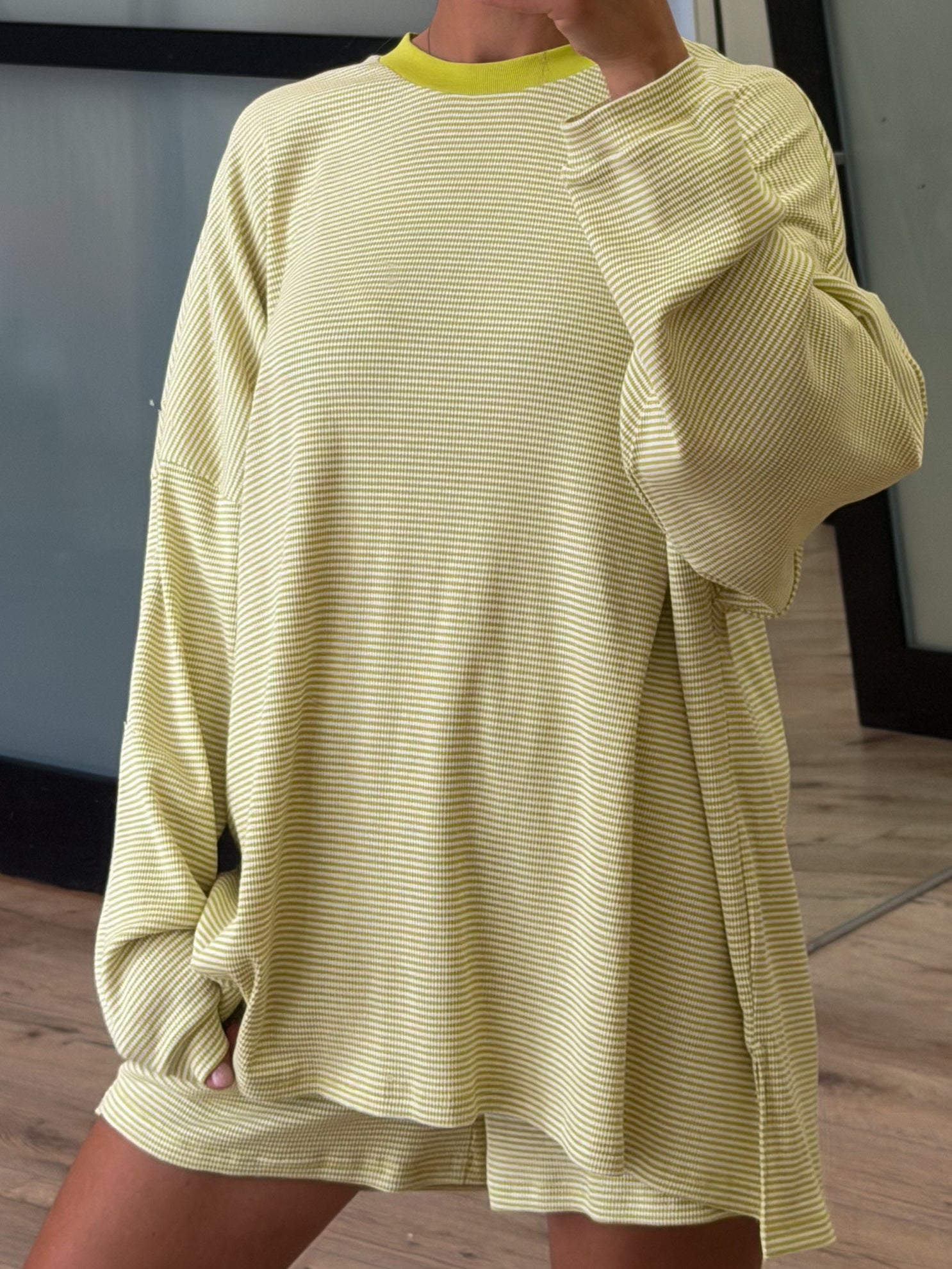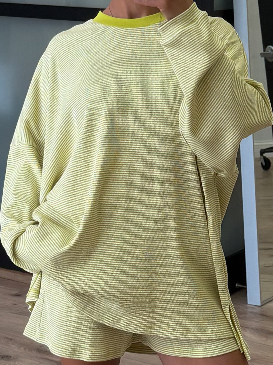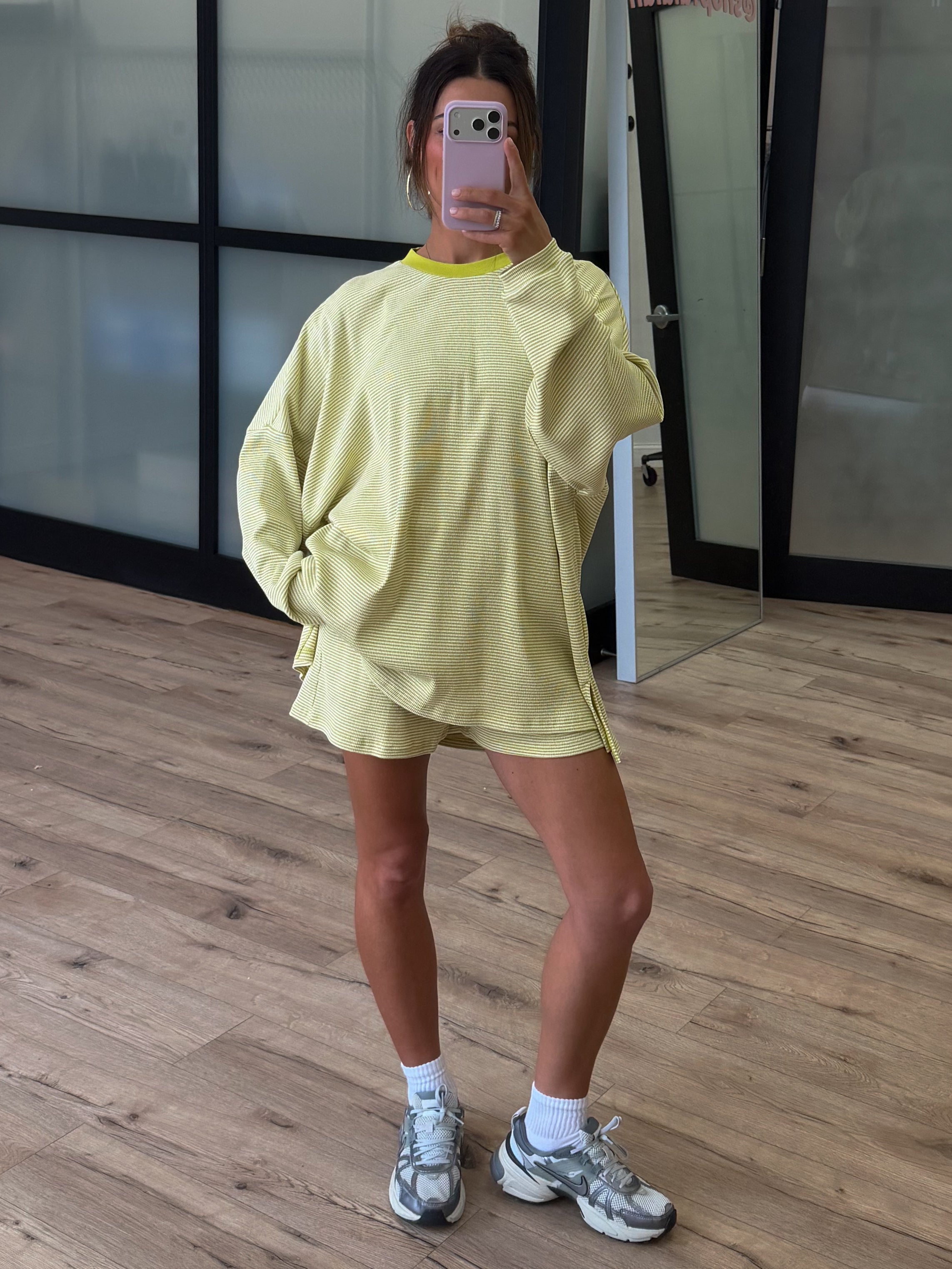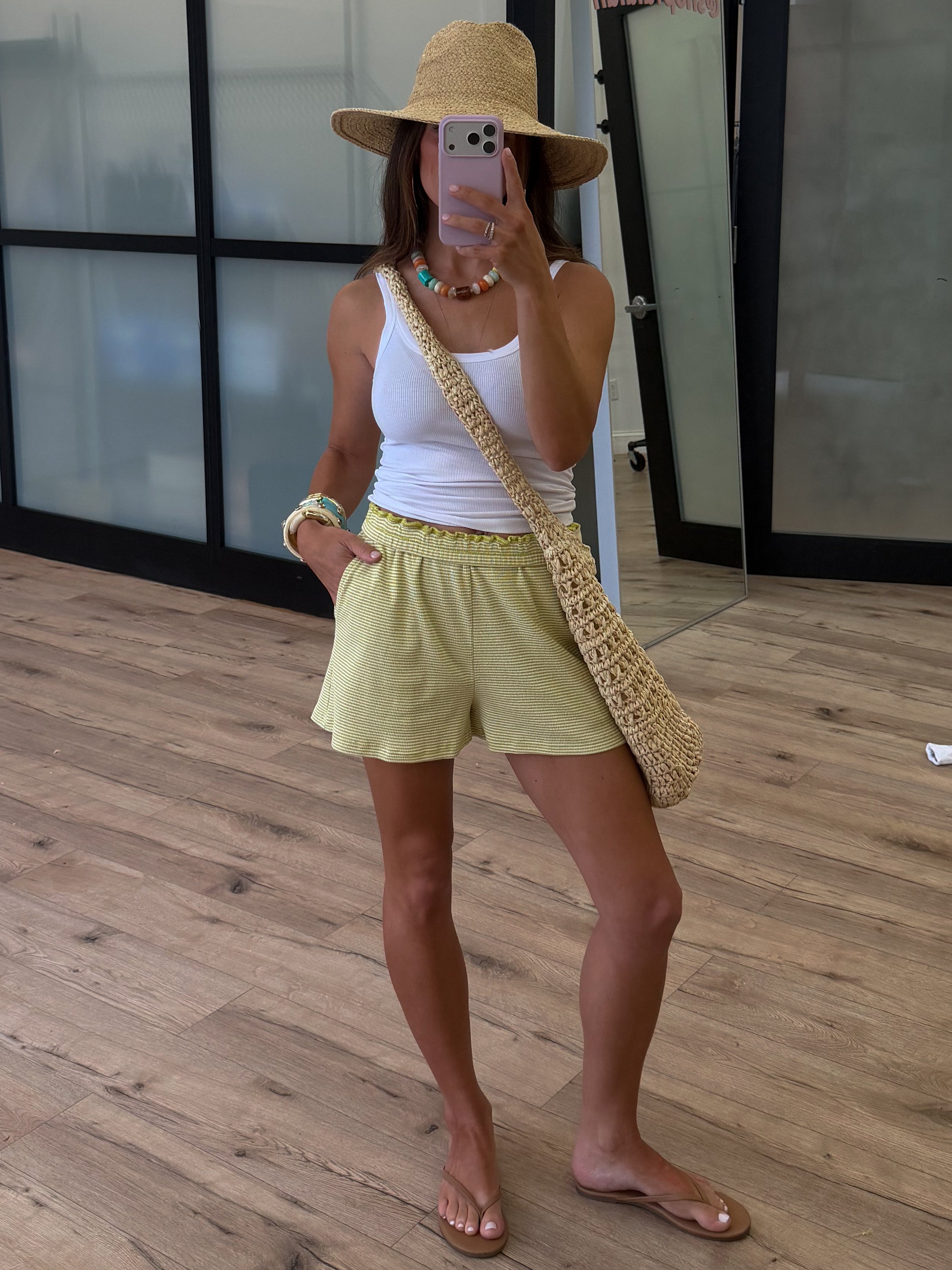 Easy Going Ribbed Stripe Shorts | Chartreuse