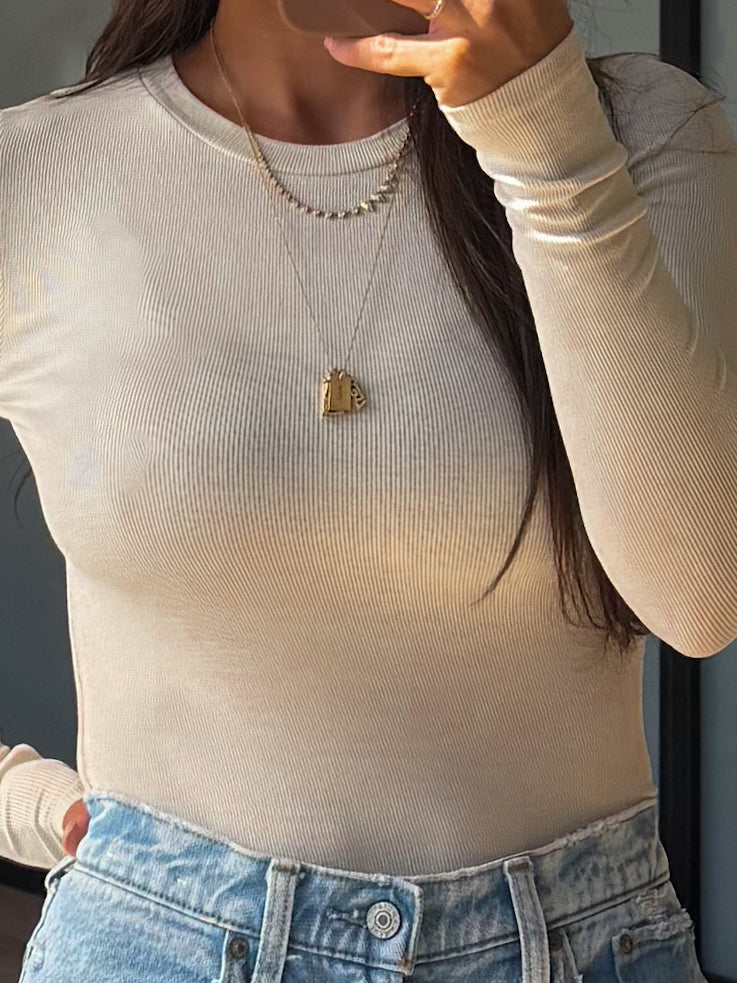 Essential Ribbed Long Sleeve | Bone | +Plus Available | RESTOCK