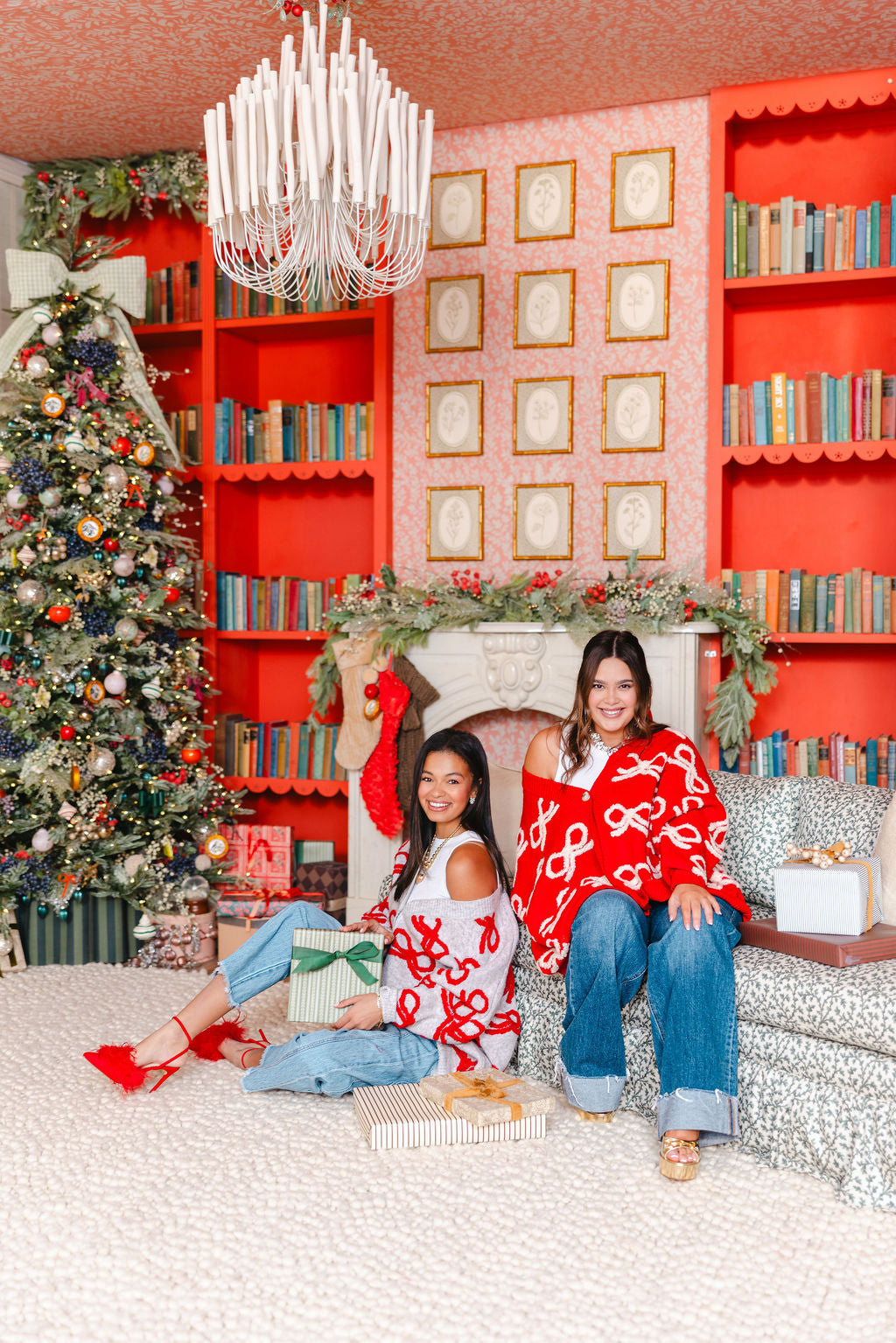Eloise Bow Button Cardigan | Red
