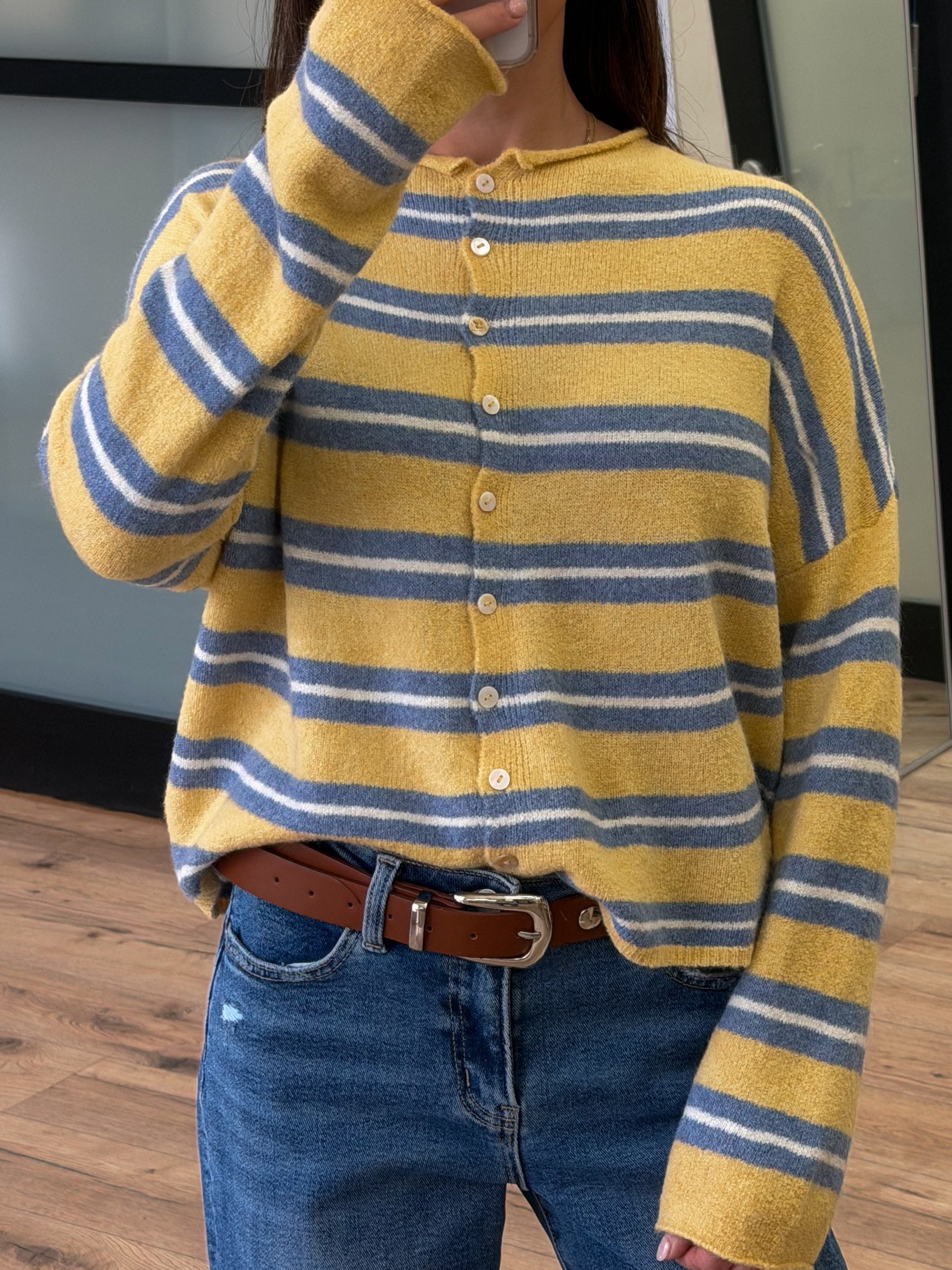 - Stripe Button-Down Cardigan