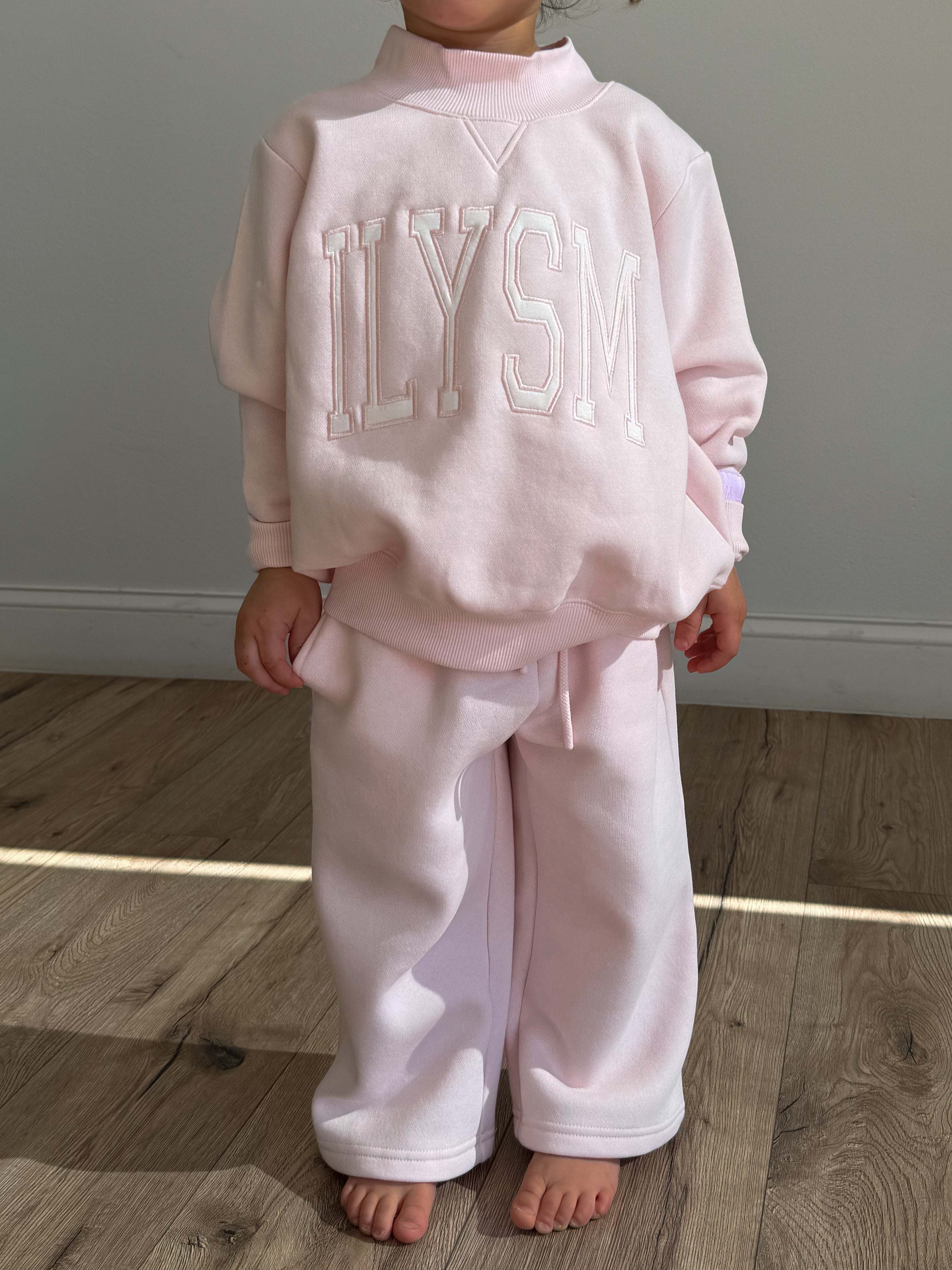 Kids "ILYSM" Mock Neck Set | Light Pink