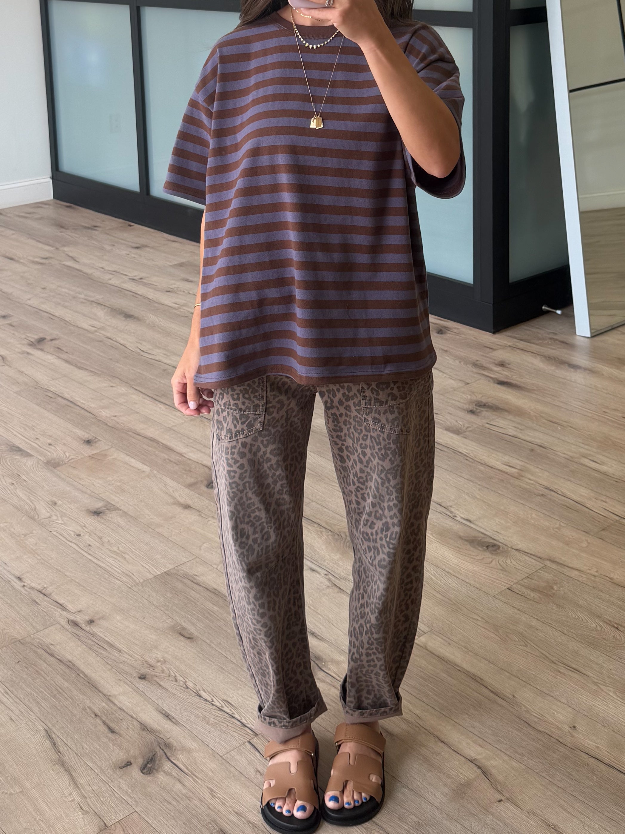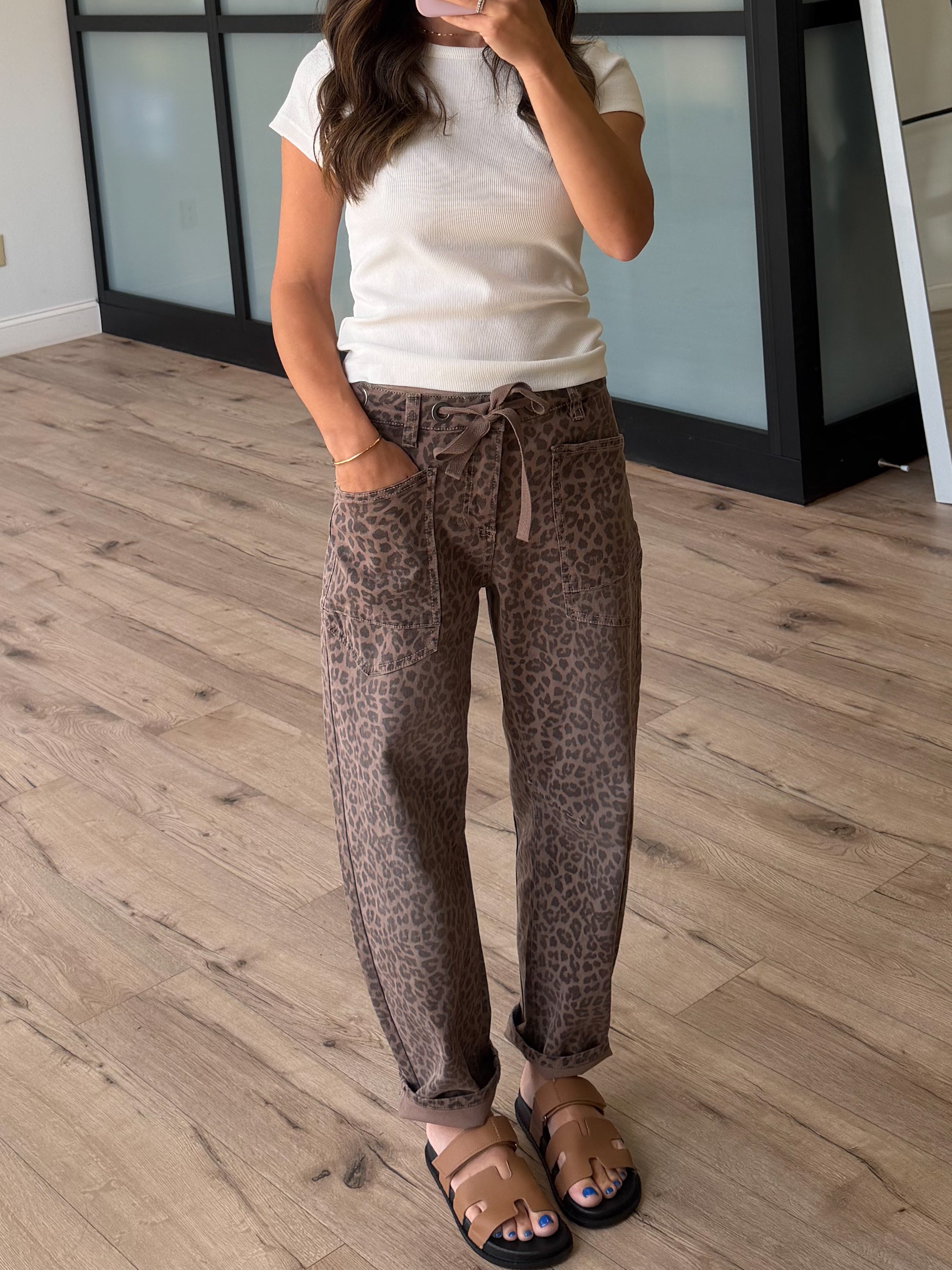 - Drawstring Tie, Leopard Print Barrel Jeans