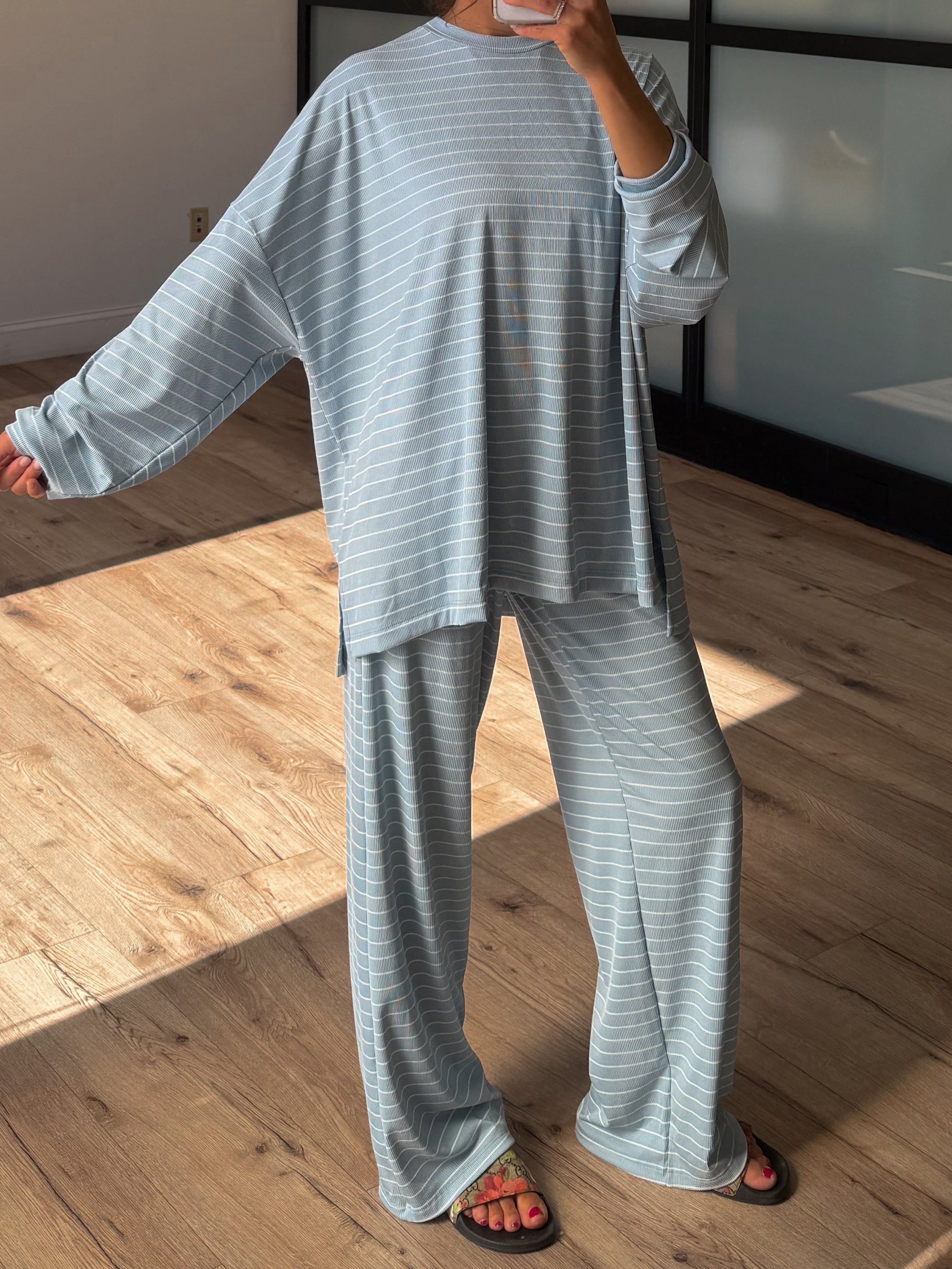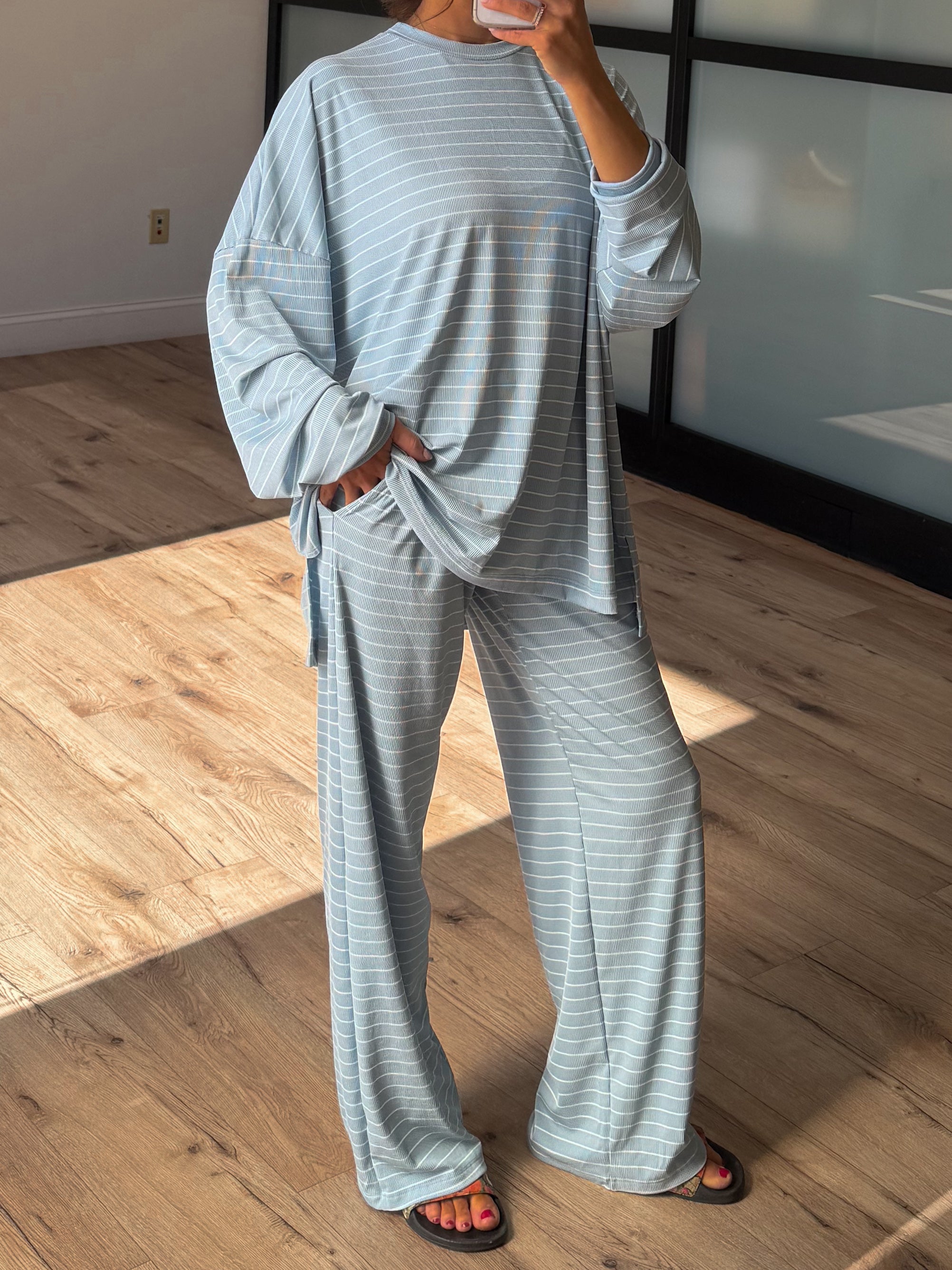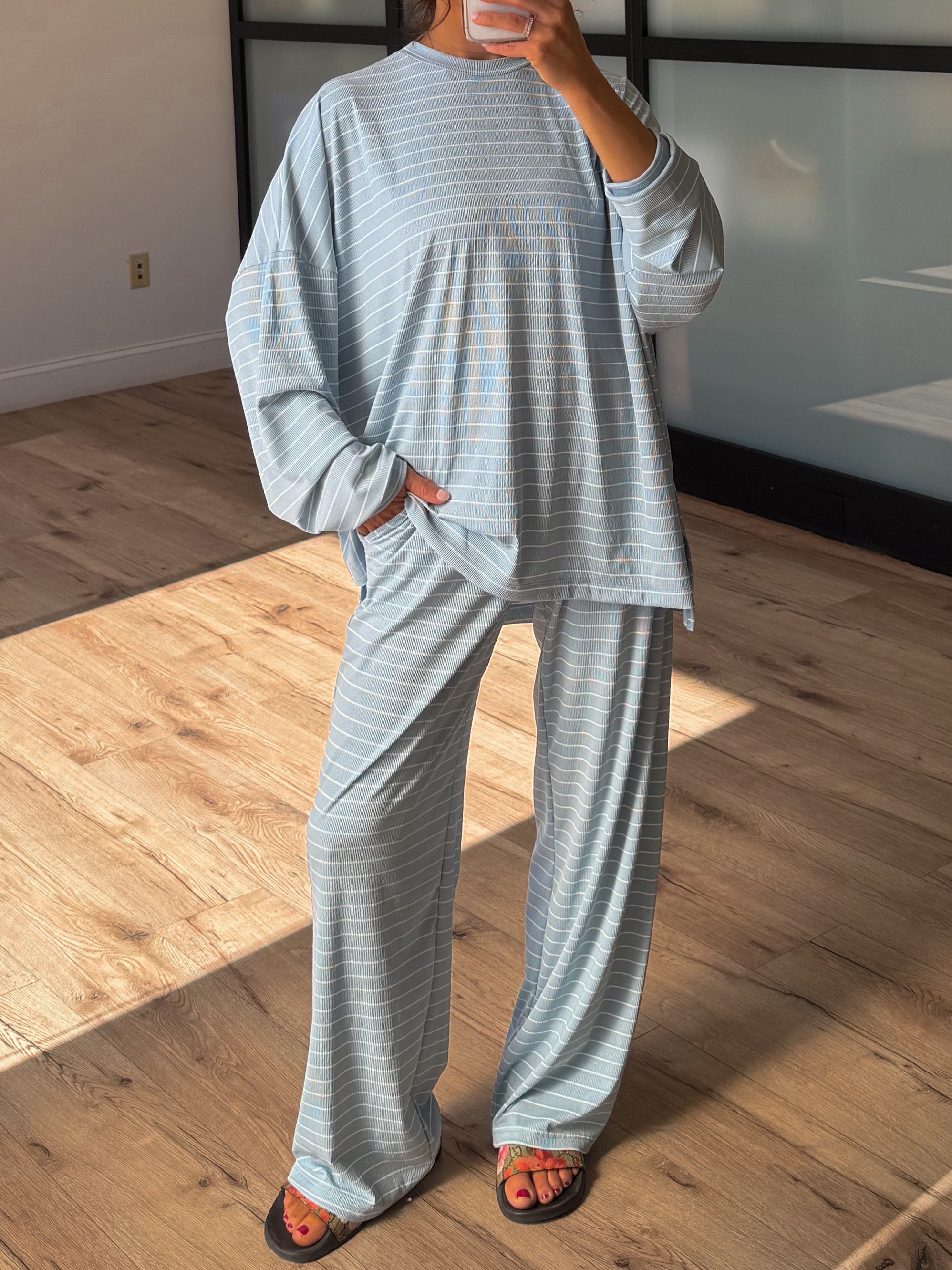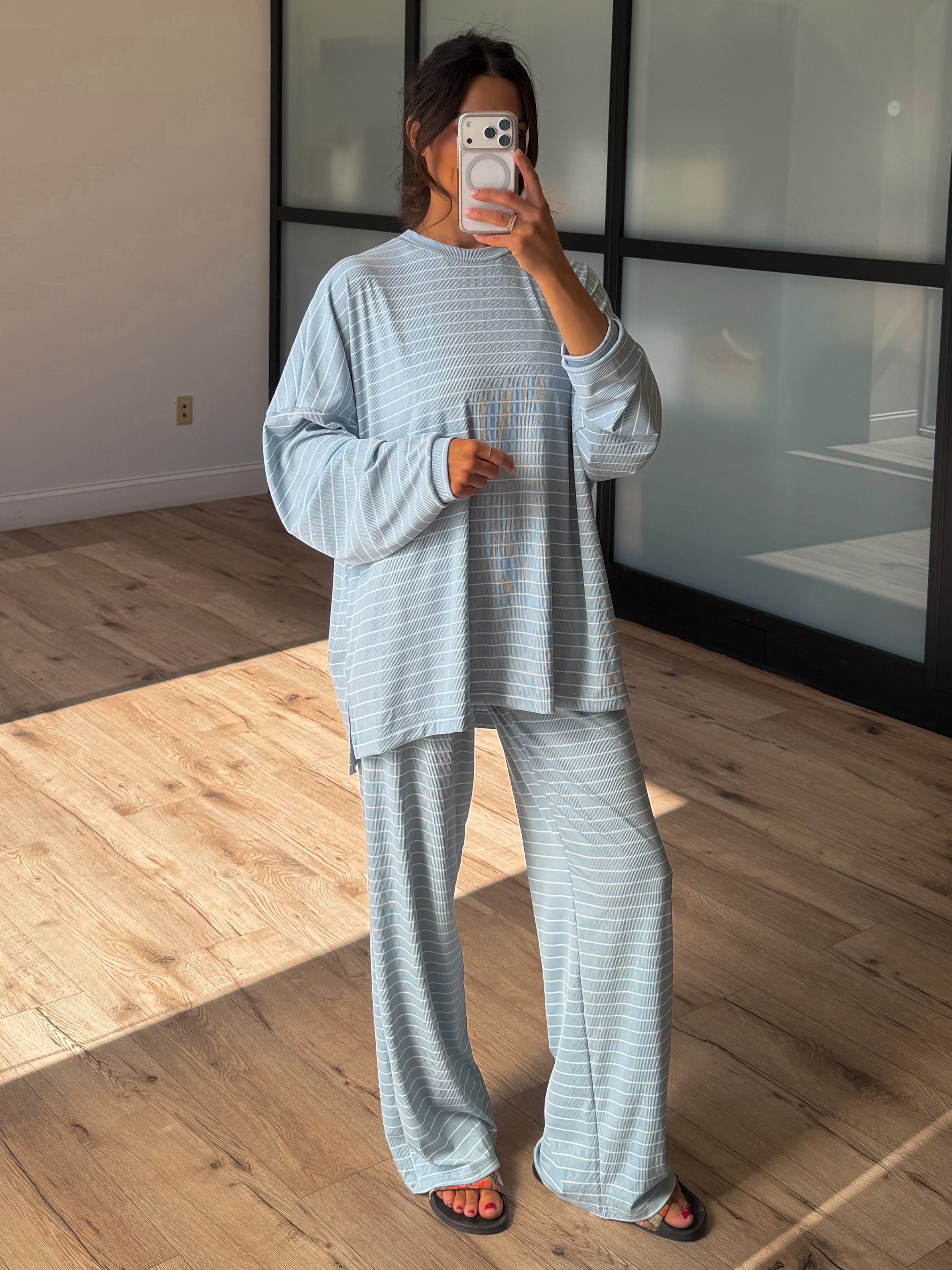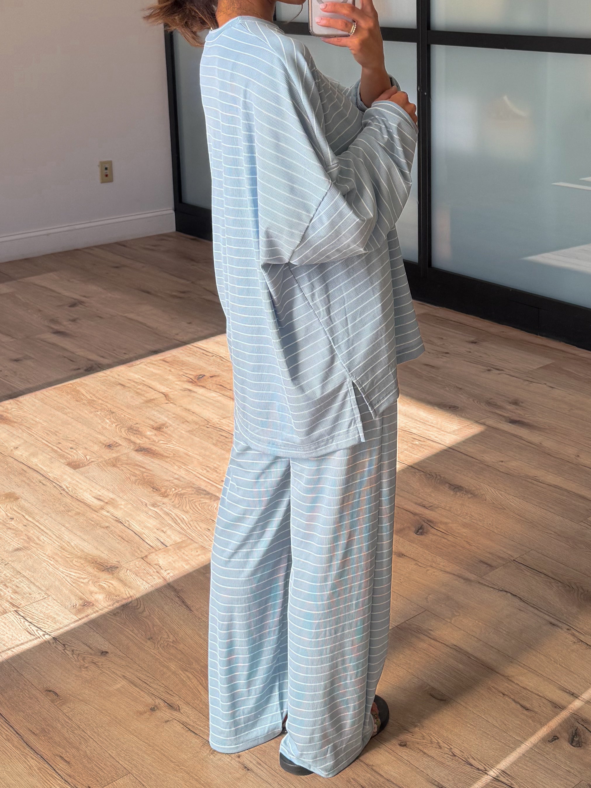 Homebody Stripe Ribbed Set | Sky Blue | +Plus Available | PREORDER