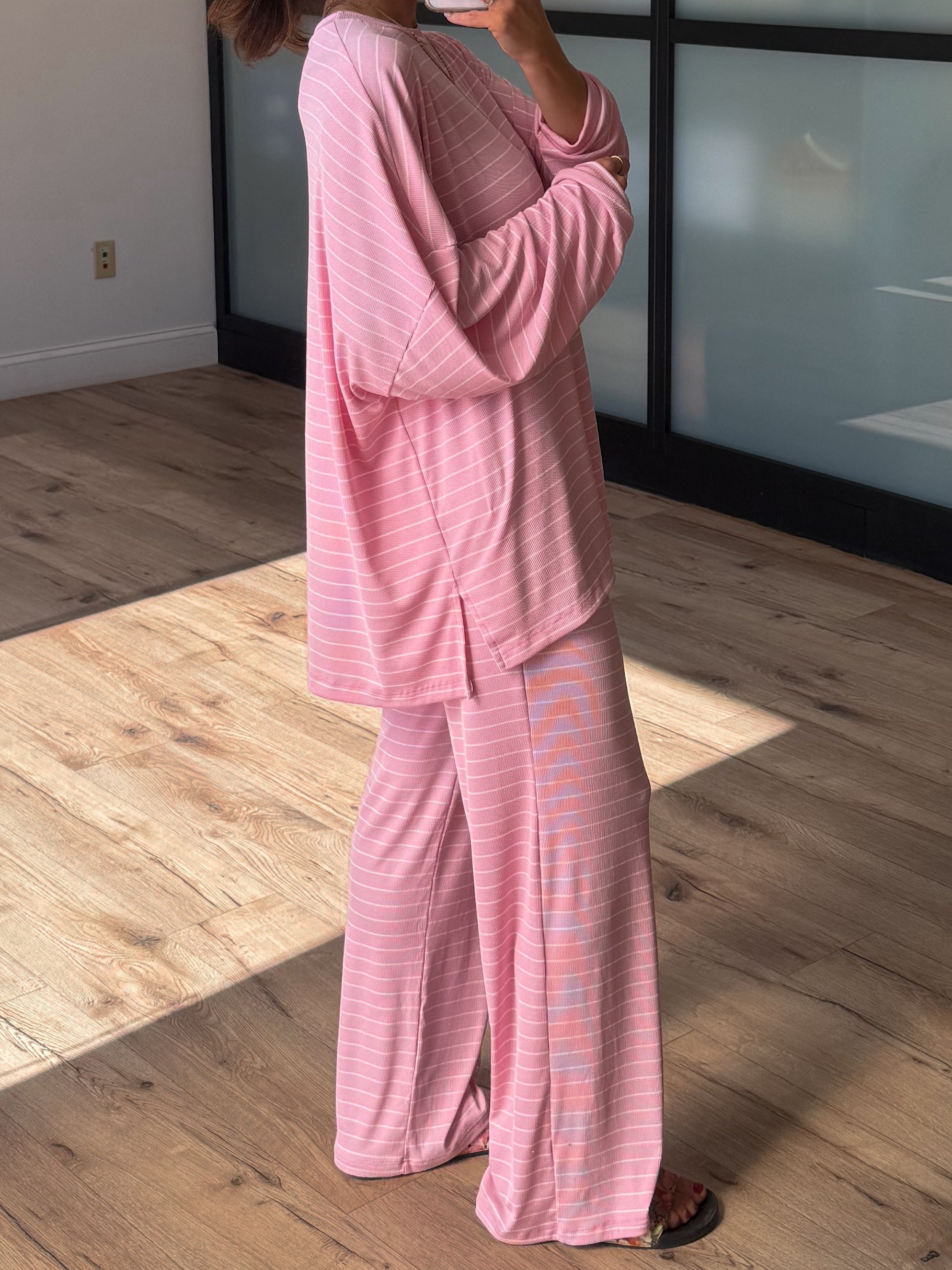 Homebody Stripe Ribbed Set | Pink | +Plus Available | PREORDER
