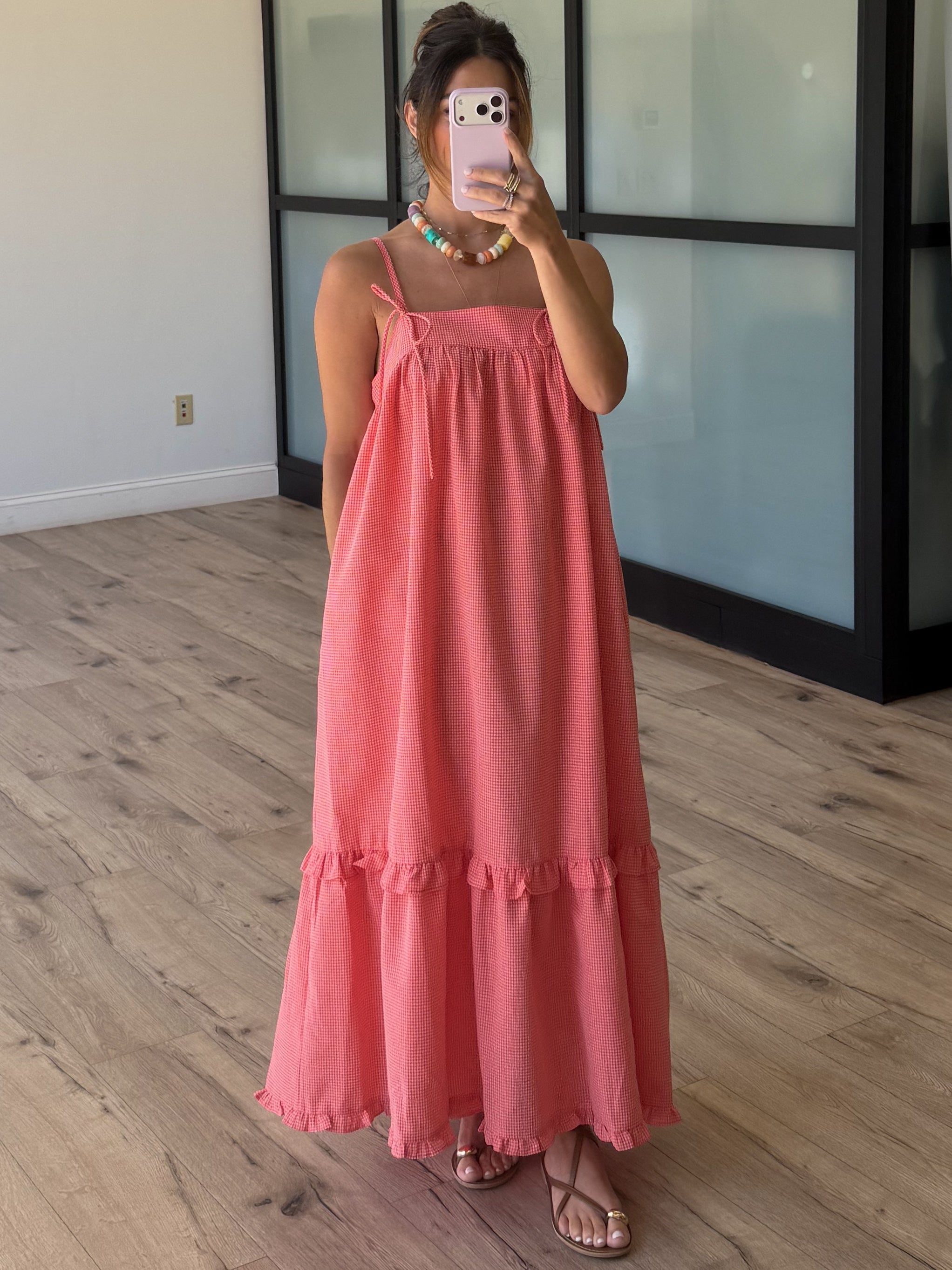 Orchard Peach Gingham Maxi Dress