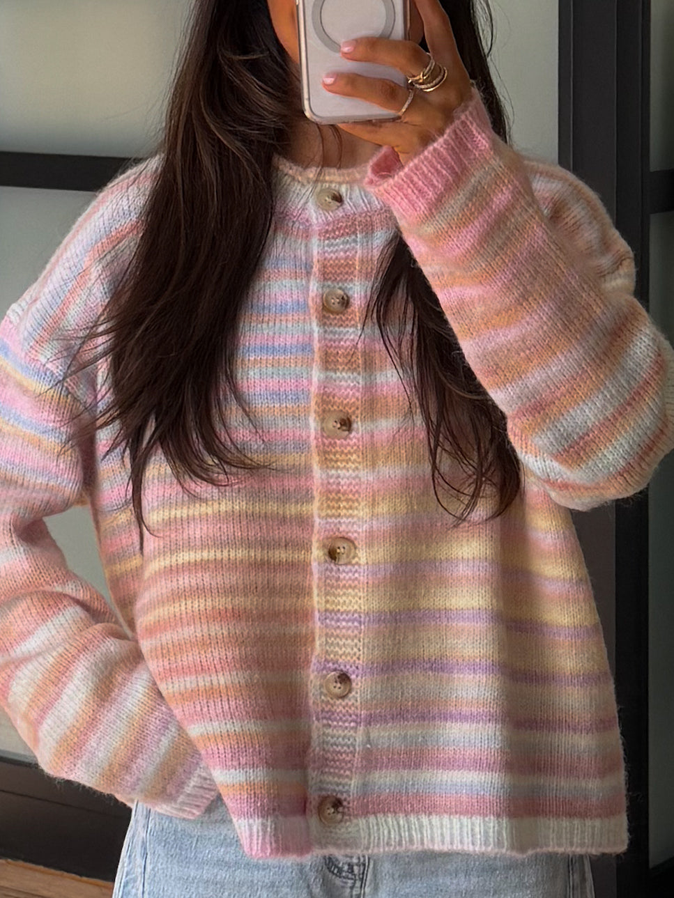 - Multi- Color Yarn Stripe Knit Sweater Cardigan