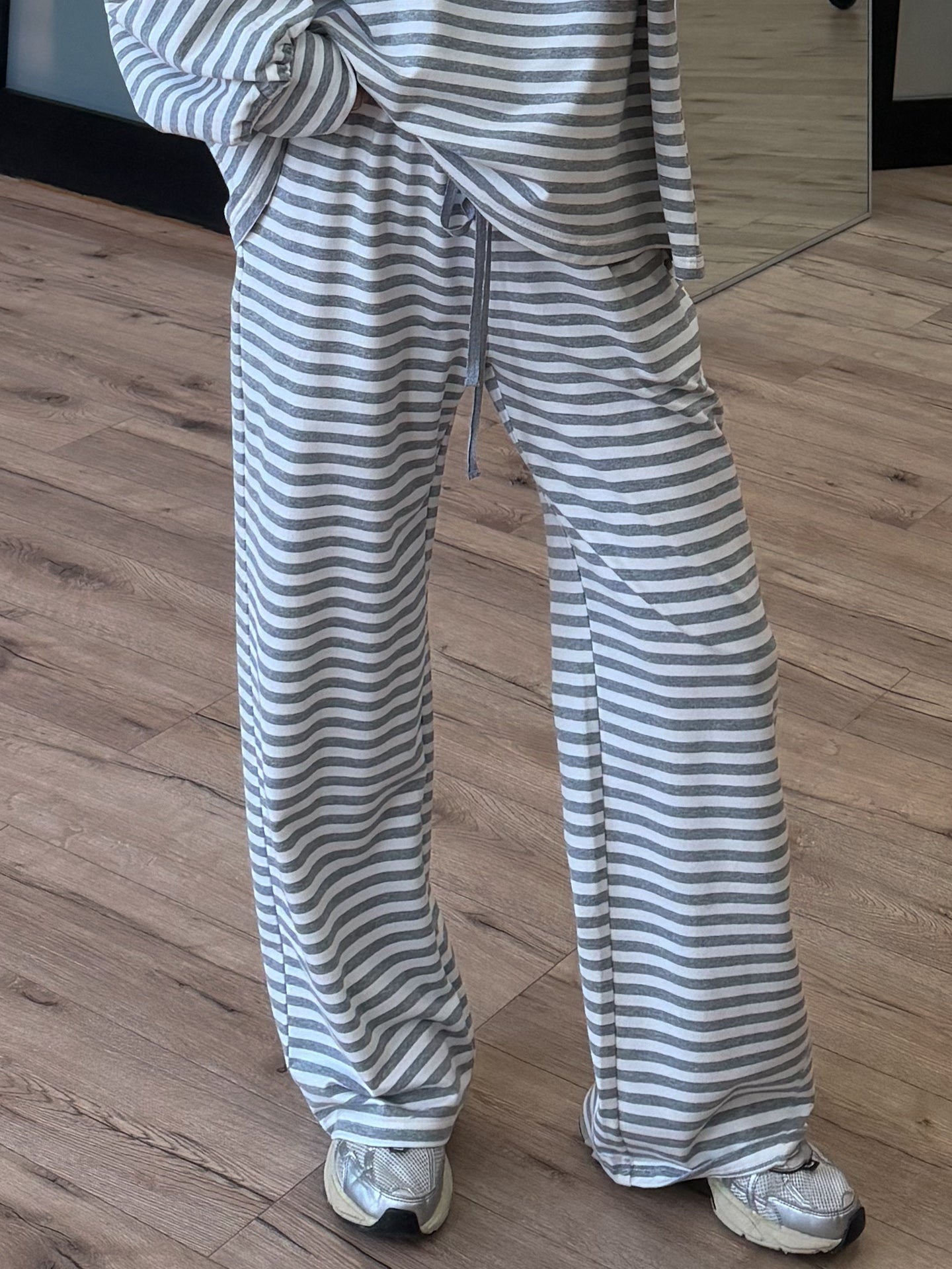 Settle In Stripe Drawstring Pants | Grey