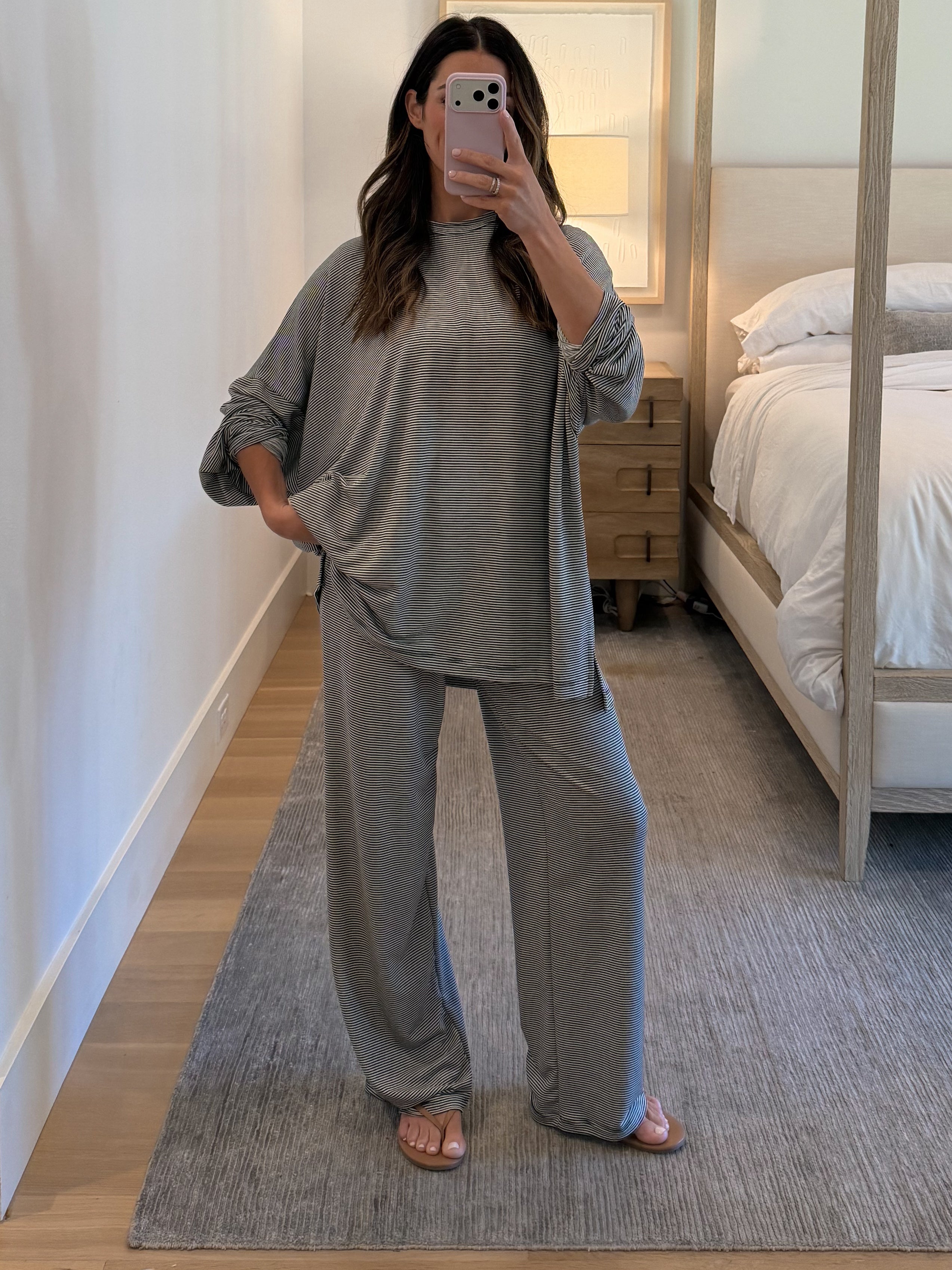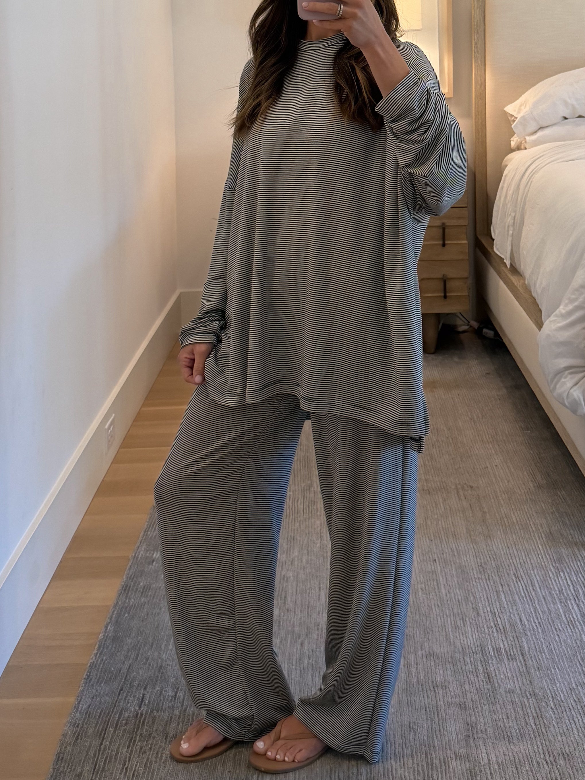 - Stripe, Mini Ribbed Oversized Long Sleeve + Pants Set