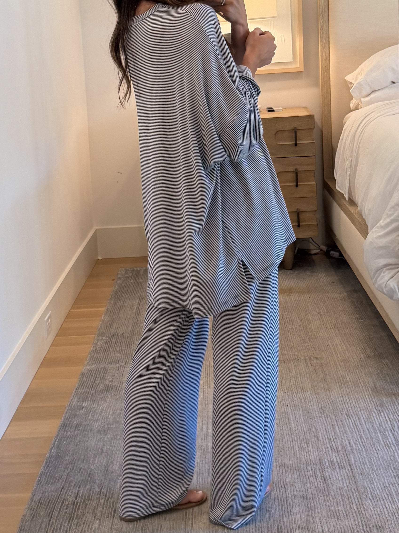- Stripe, Mini Ribbed Oversized Long Sleeve + Pants Set