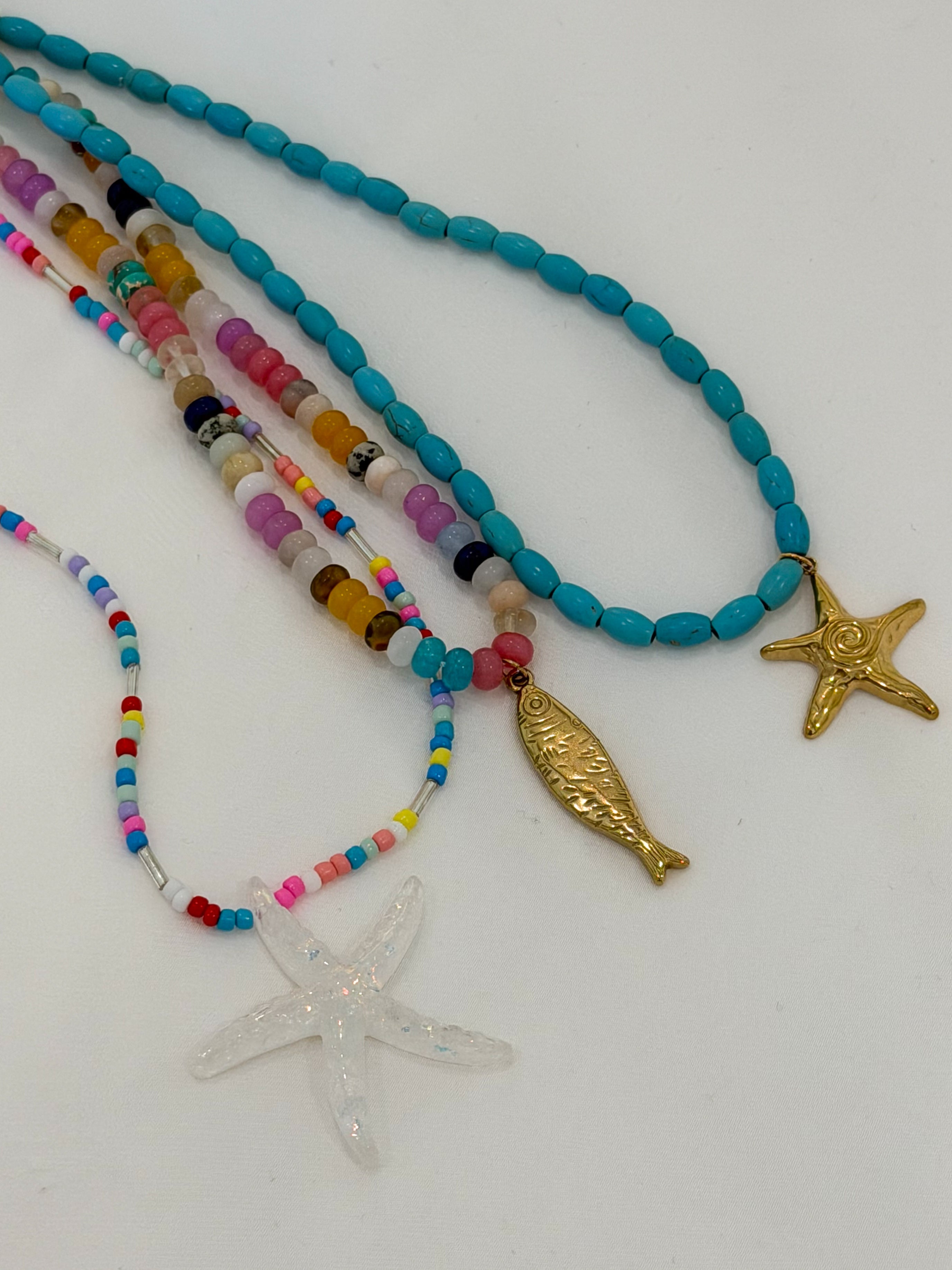 • Beaded Starfish Charm Necklace