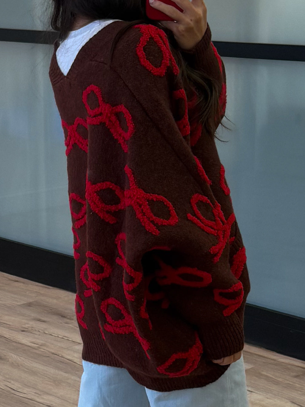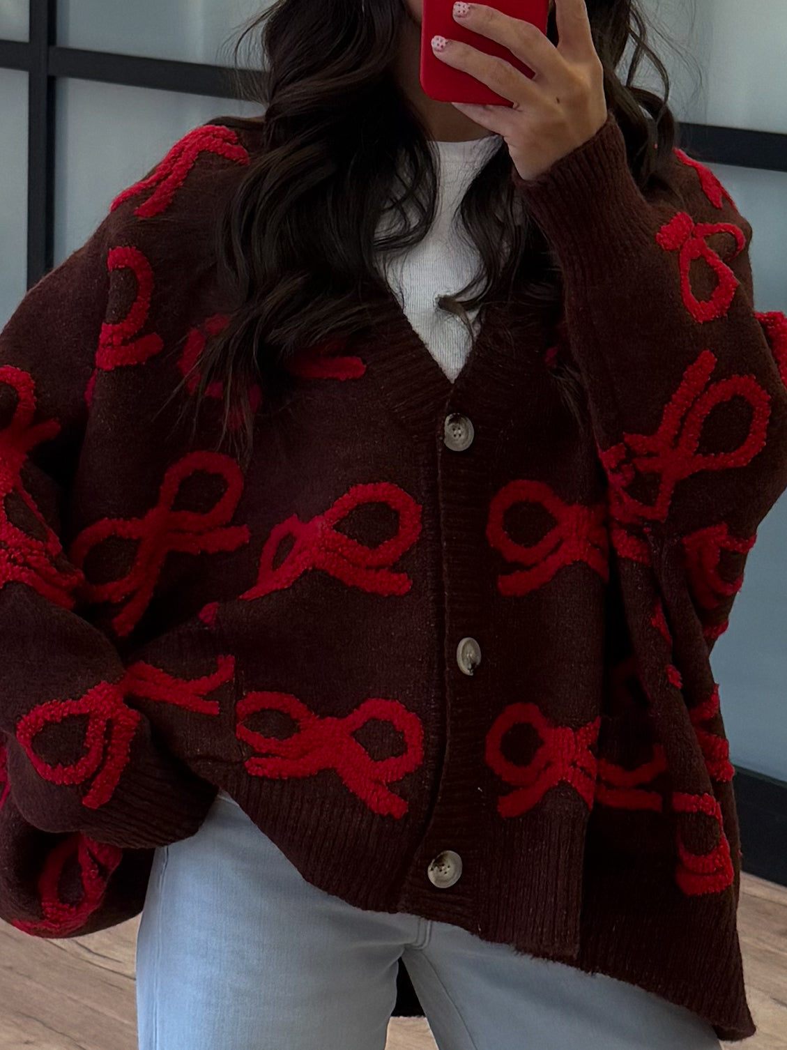 - Textured Bow Pattern Knit Cardigan