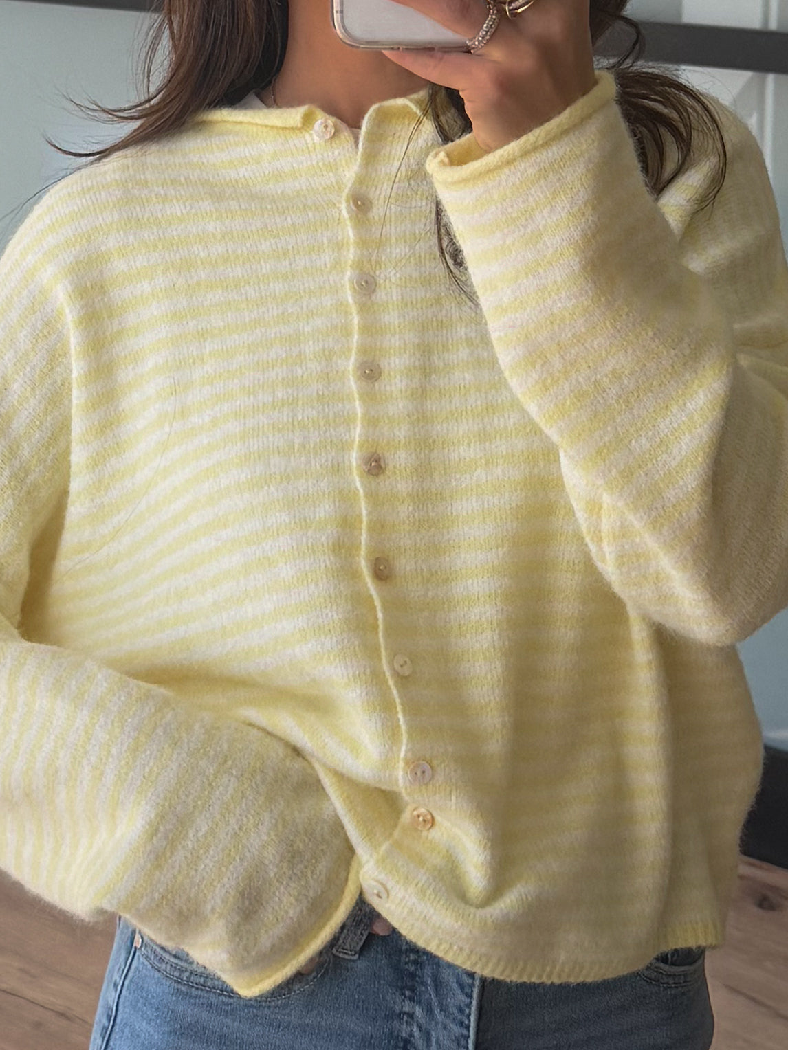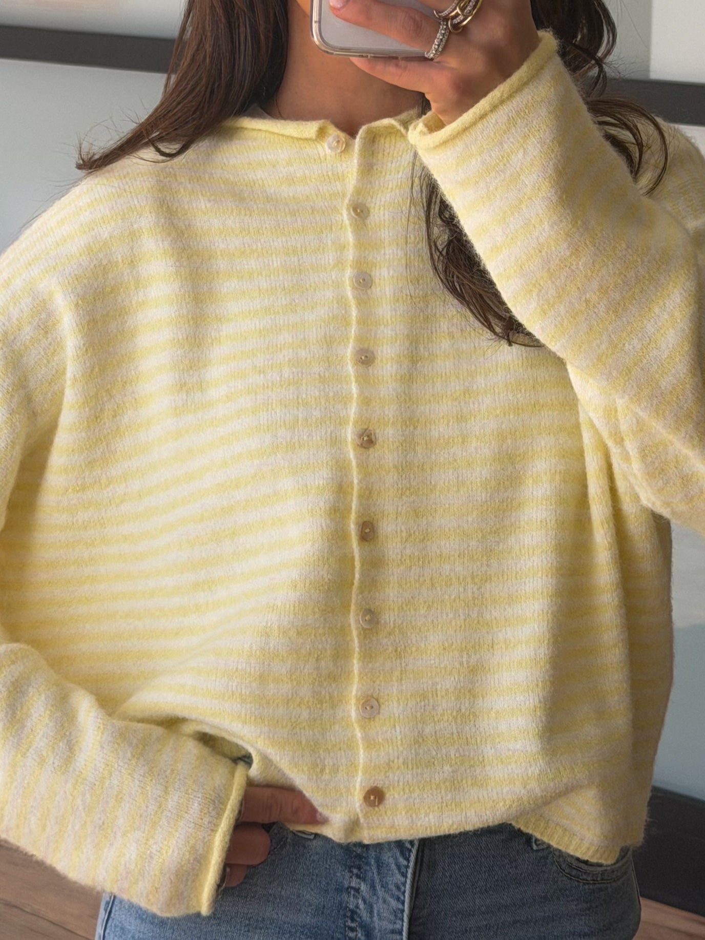 - Mini Stripe Pattern Button-Down Cardigan