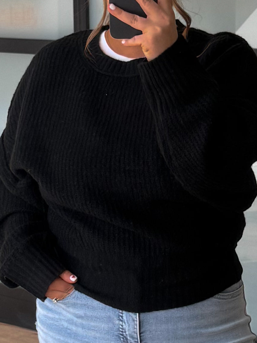 • Contrast Ribbed Knit Neckline, Cuffs and Hem