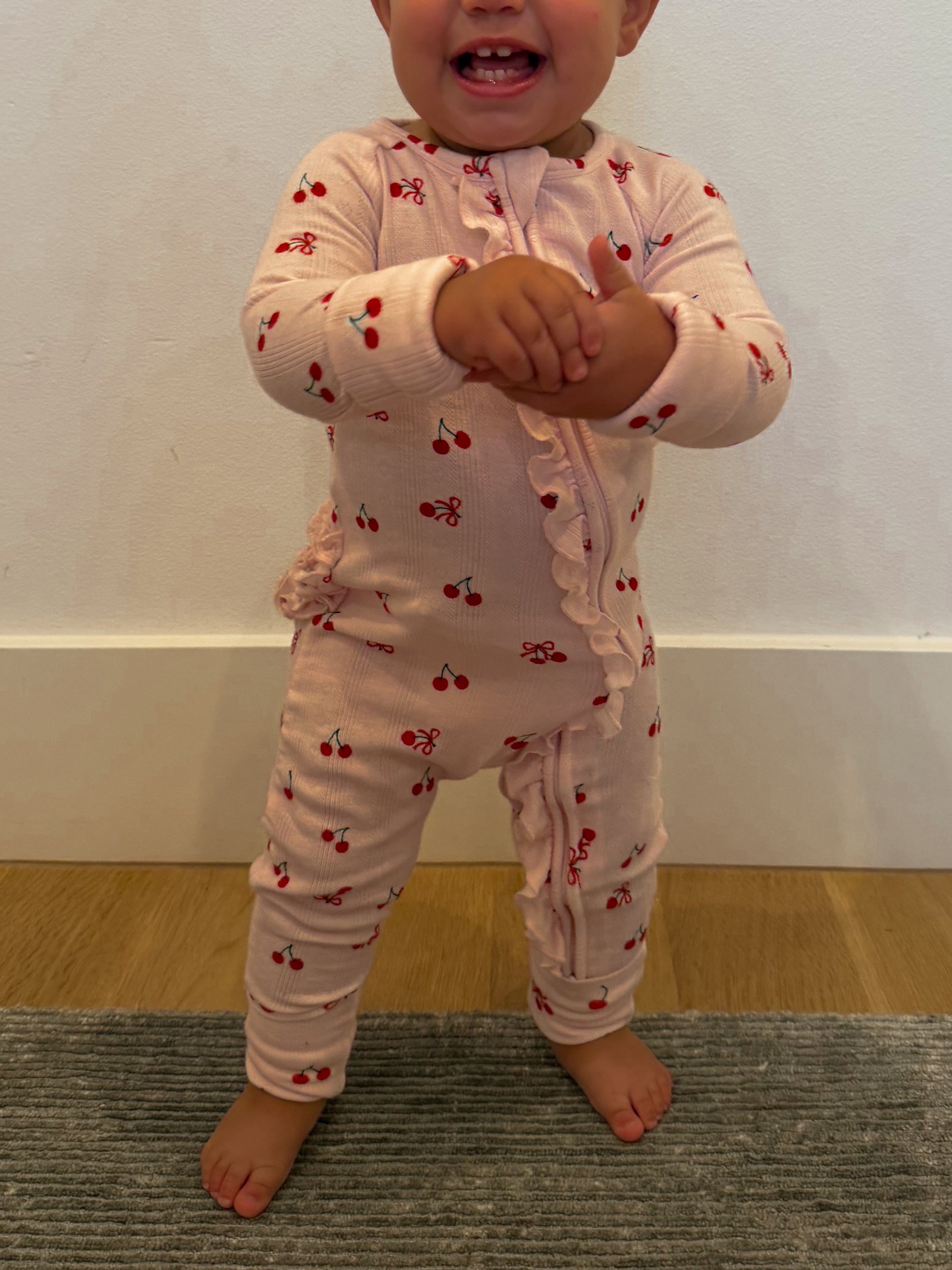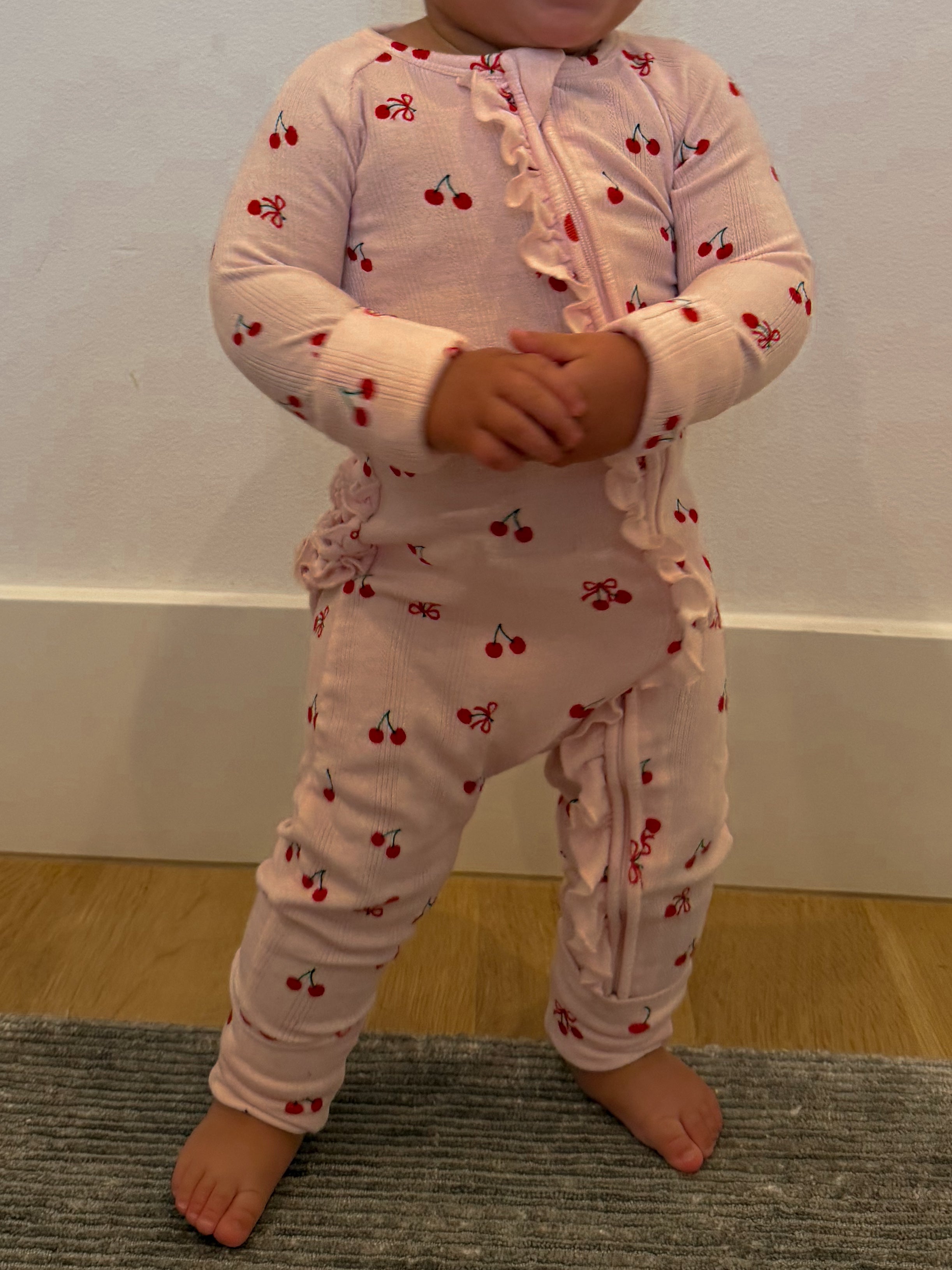 Cherry Pointelle Ruffle Zippy | Tiny Talulah